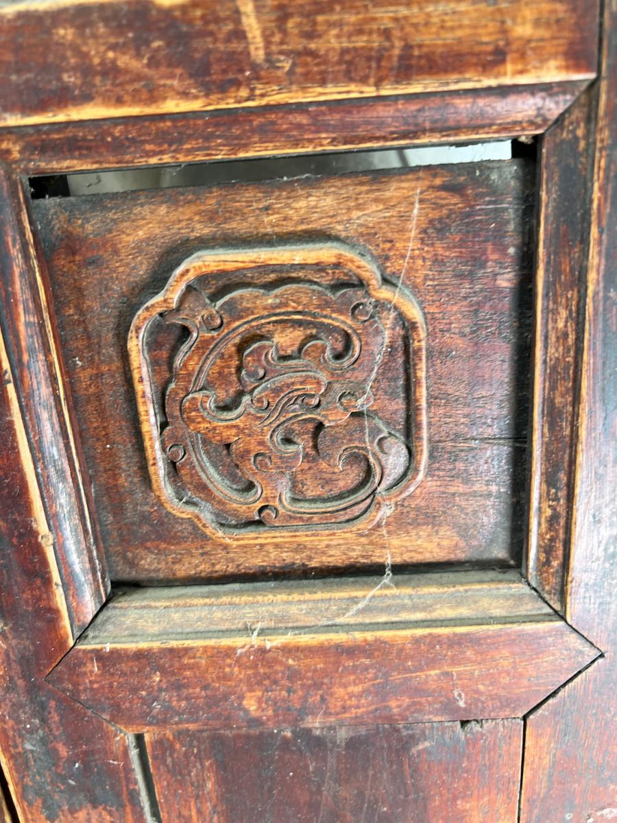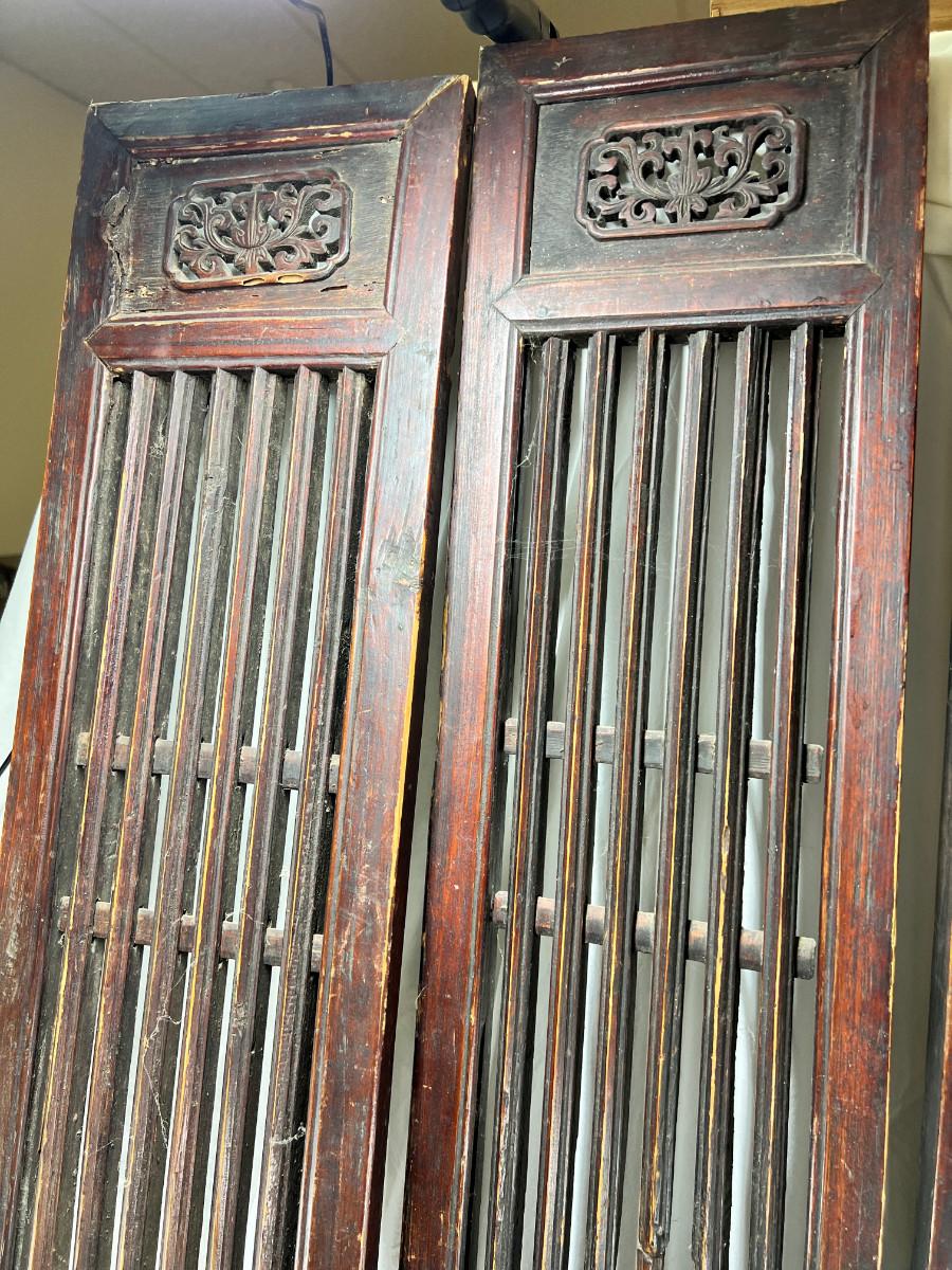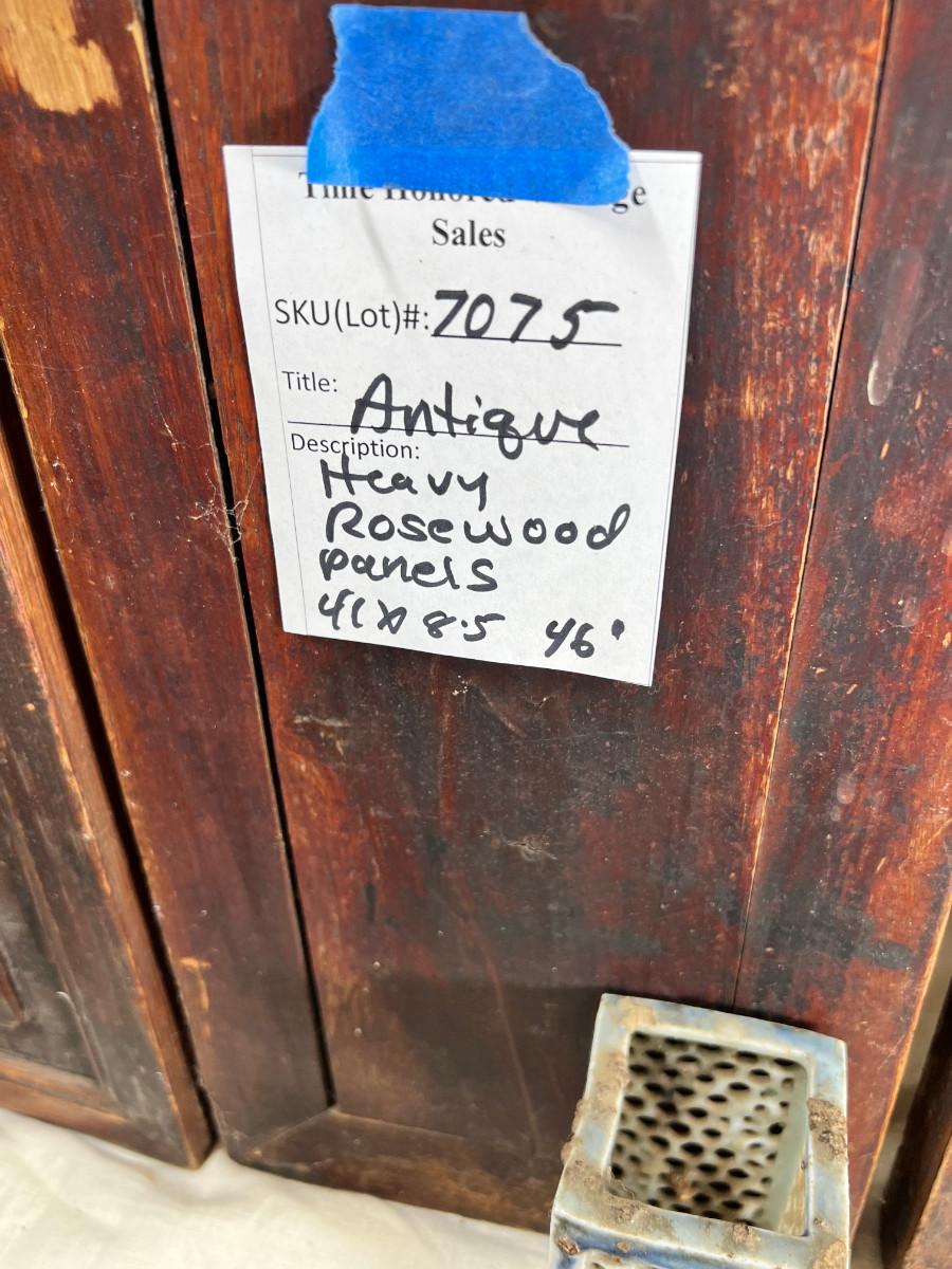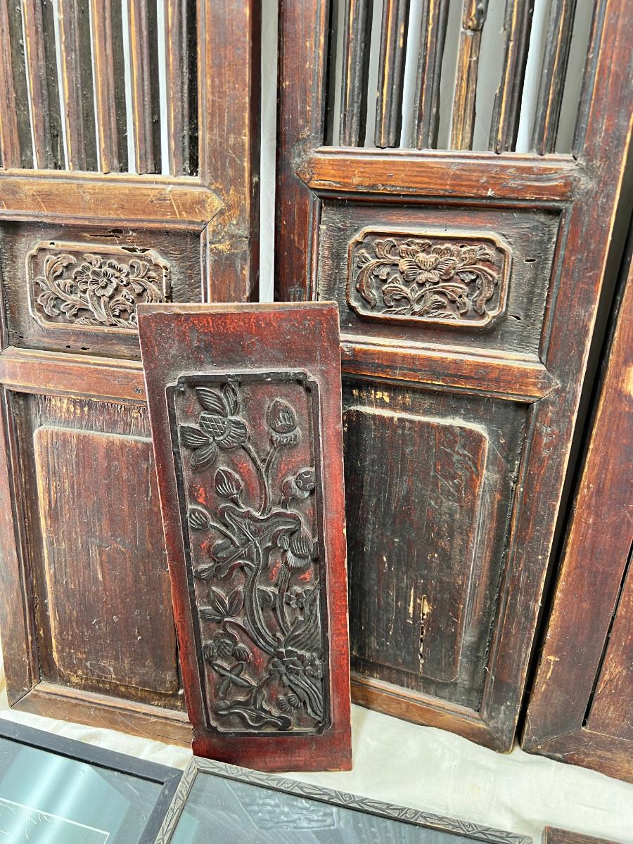 Matching rosewood carved antique [panels, 2 longer. 46" two 41" Smaller carved flower panel. perforated ceramic.