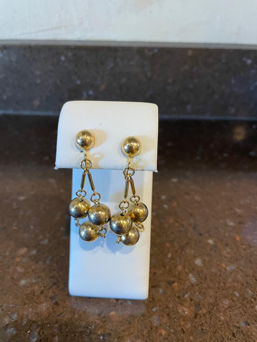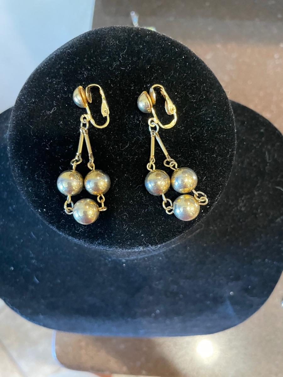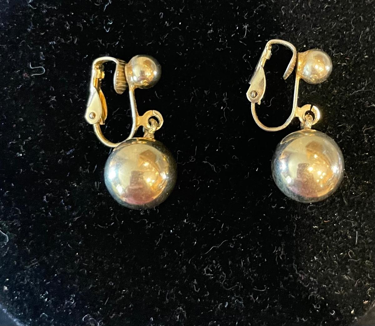 2 pairs of earrings with gold dangly balls.