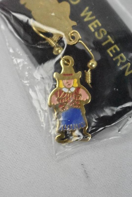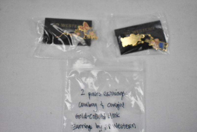 2 Pairs of Earrings: Cowboy & Cowgirl Gold-Colored Hook Earrings - New