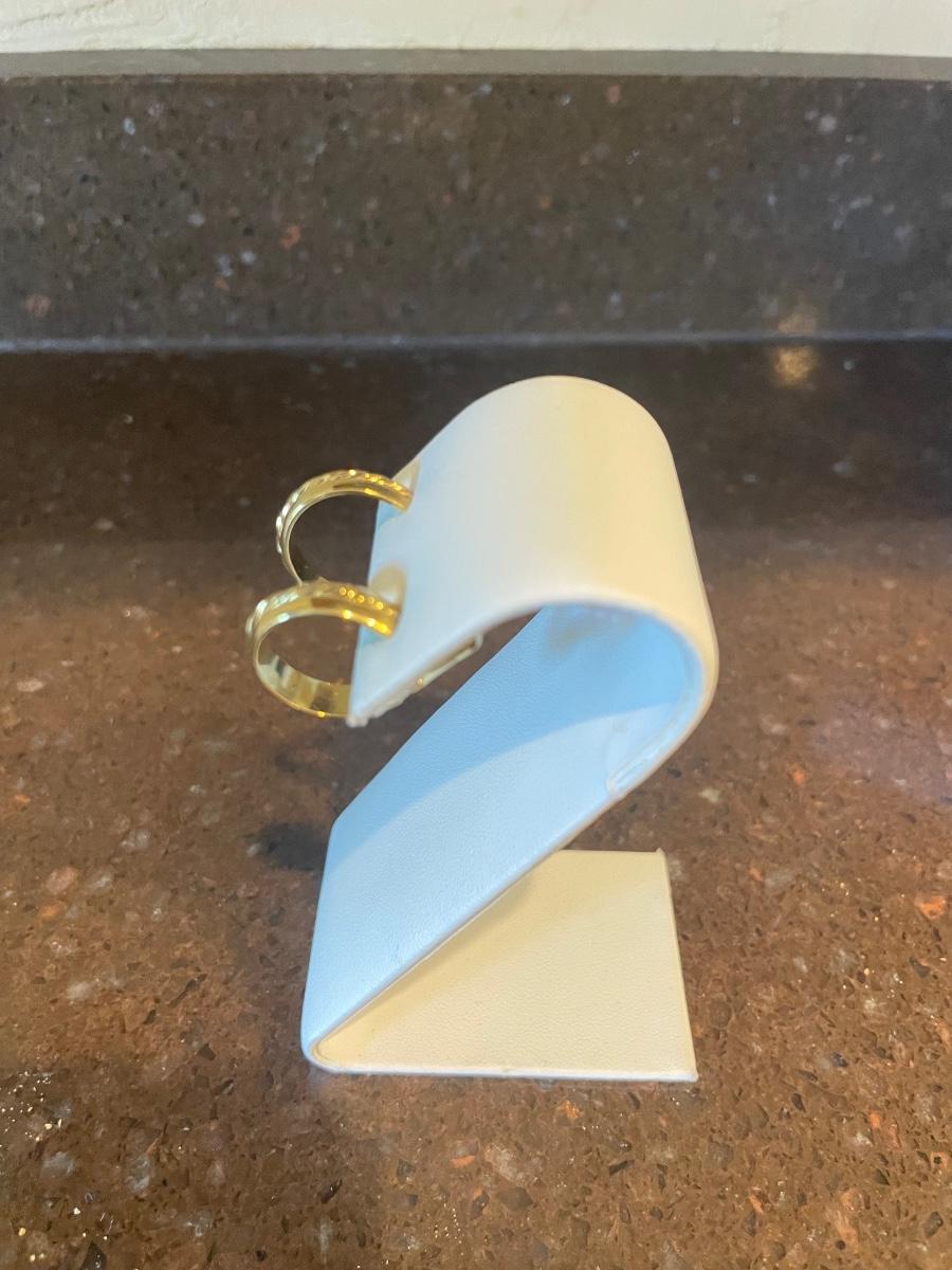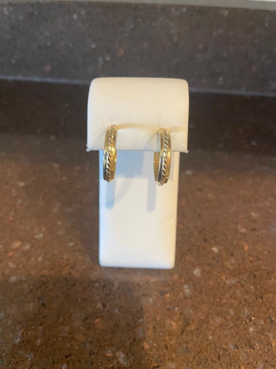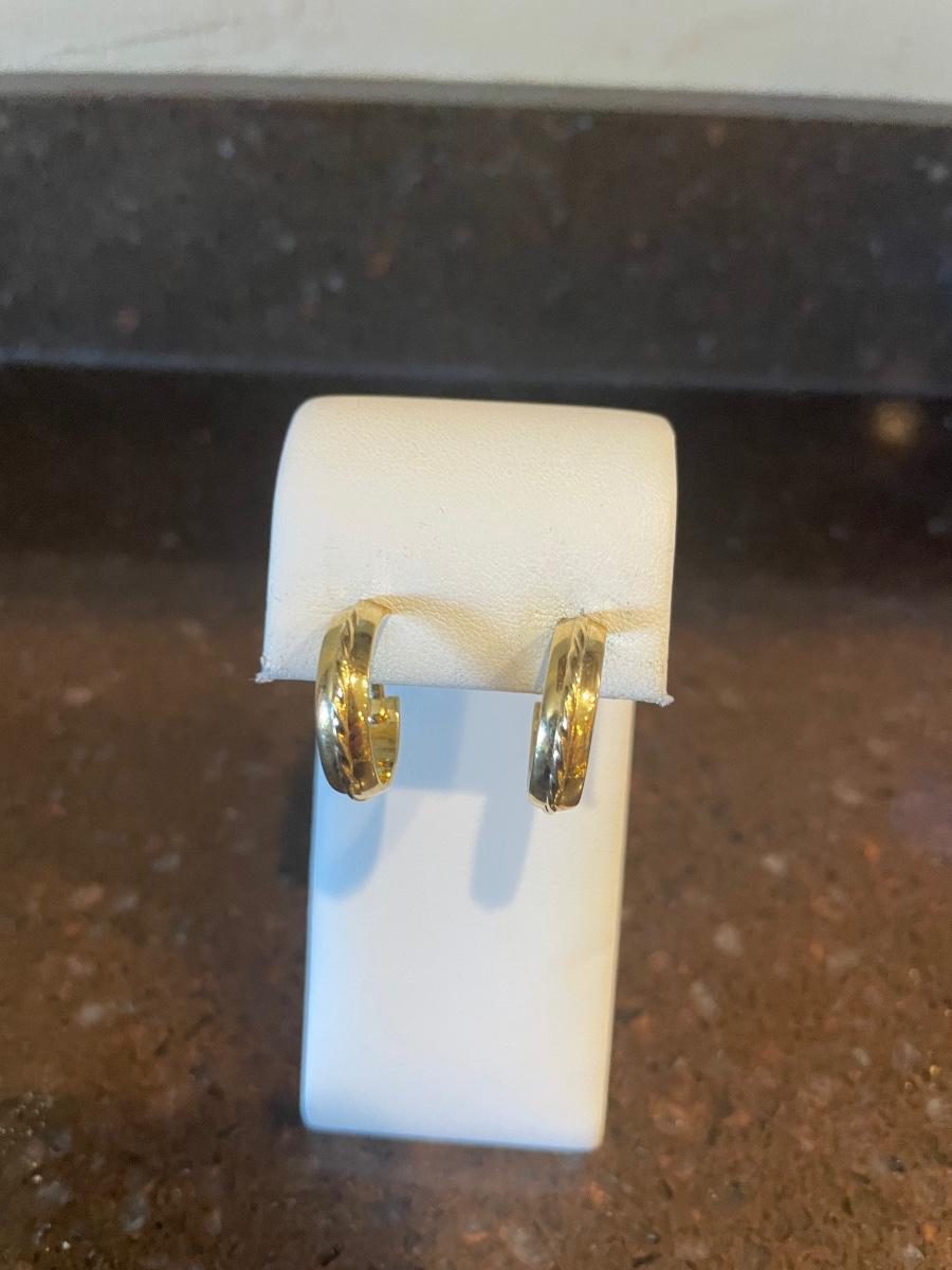 2 pairs of gold hoop earrings. 1 is slightly smaller than the other.
