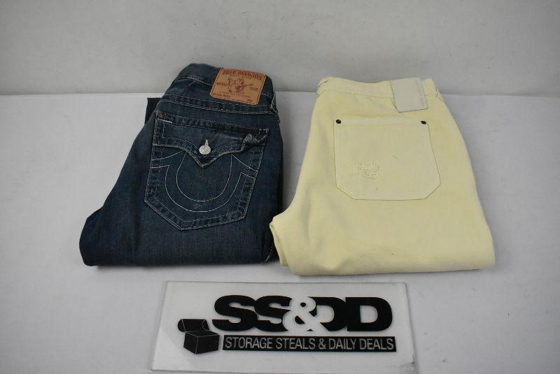 2 Pairs of Jeans: True Religion Ricky, Blue Size 33, 10 DEEP Cream Size 34