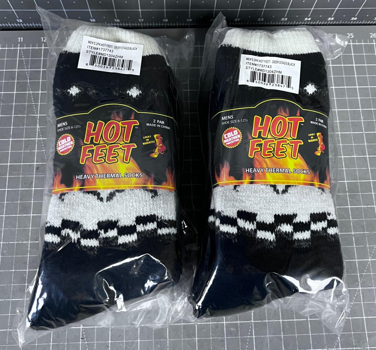 2 PAIRS of Men's HOT FEET Heavy Thermal Socks