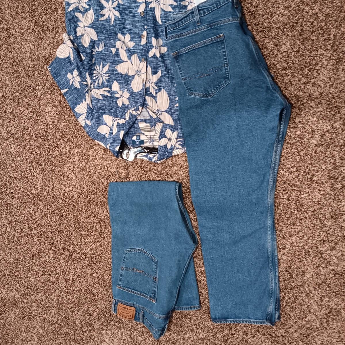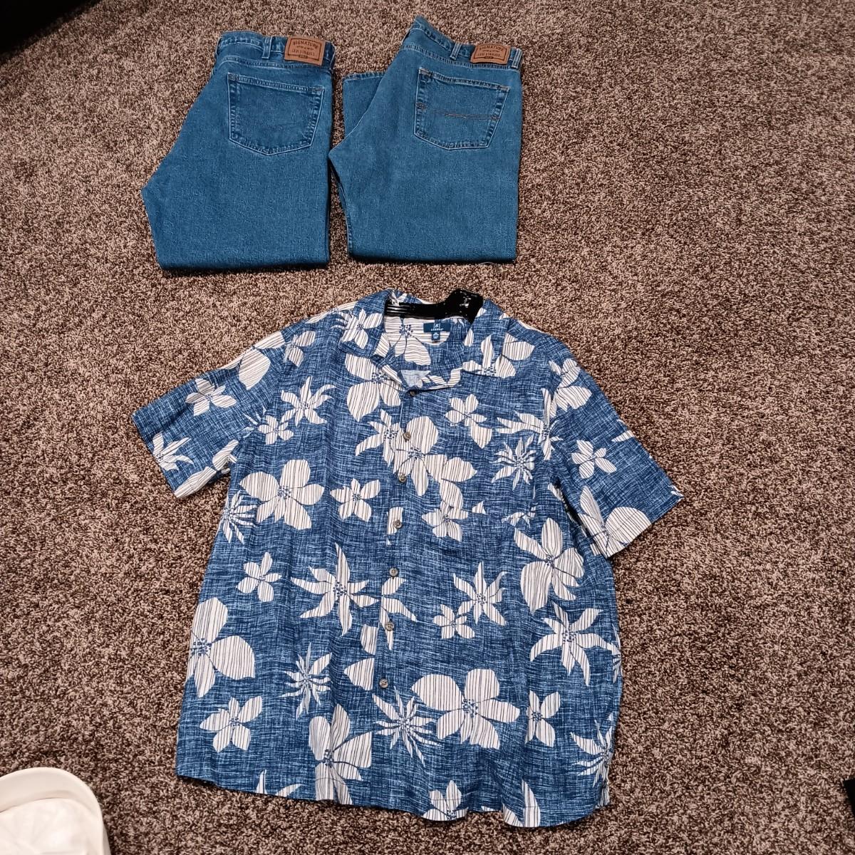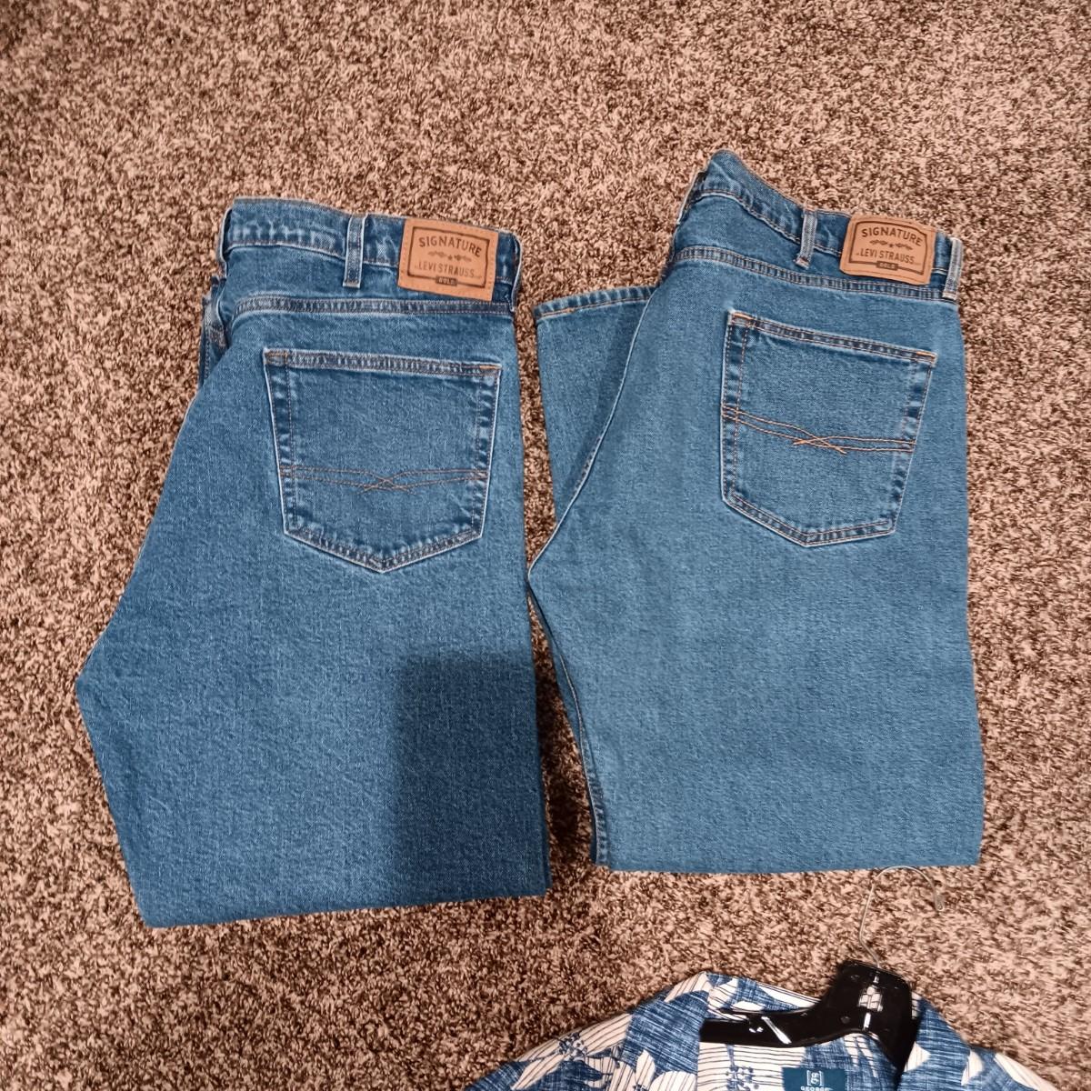 2 PAIRS OF MEN'S SIGNATURE LEVI'S AND A GEORGE HAWAIIAN STYLE SHIRT