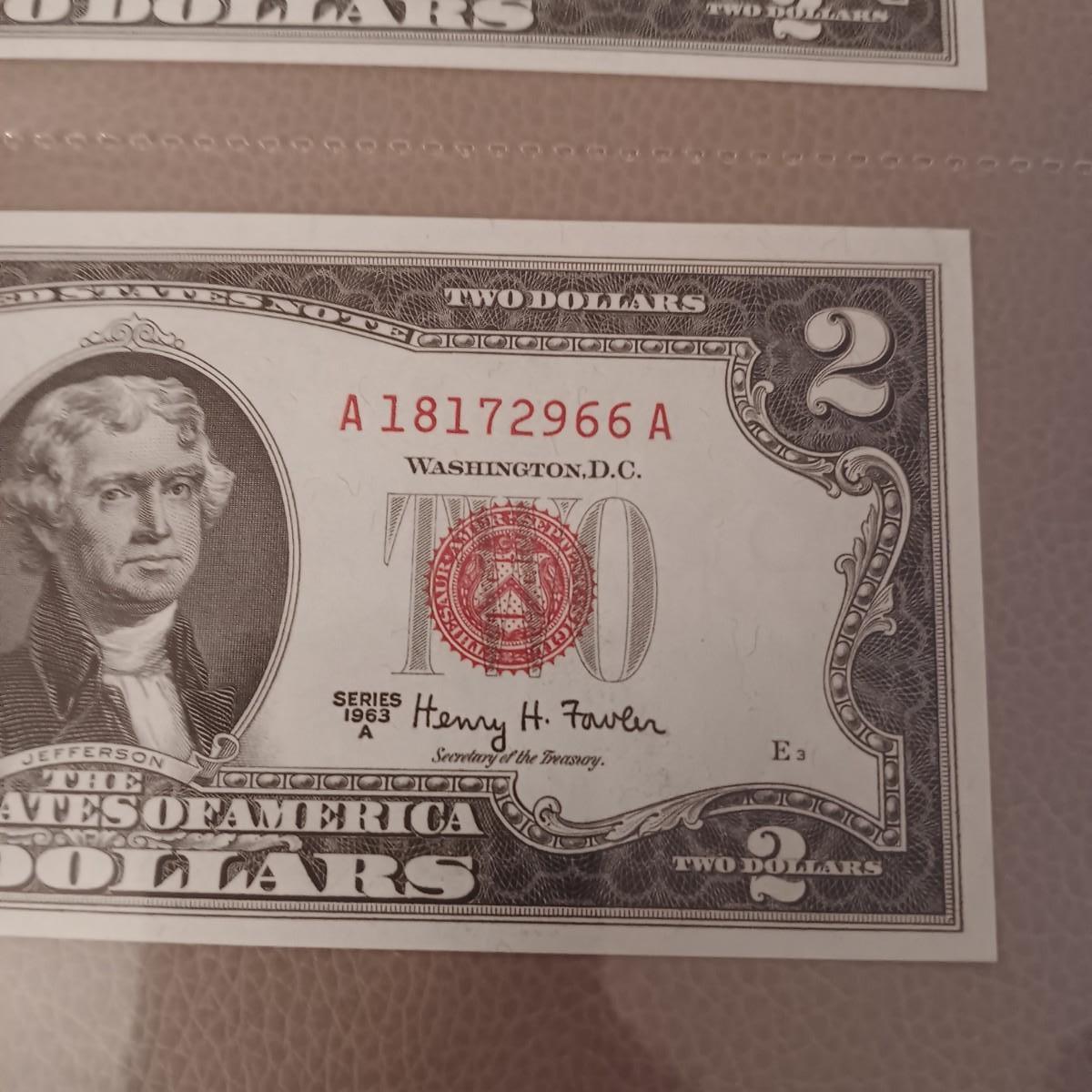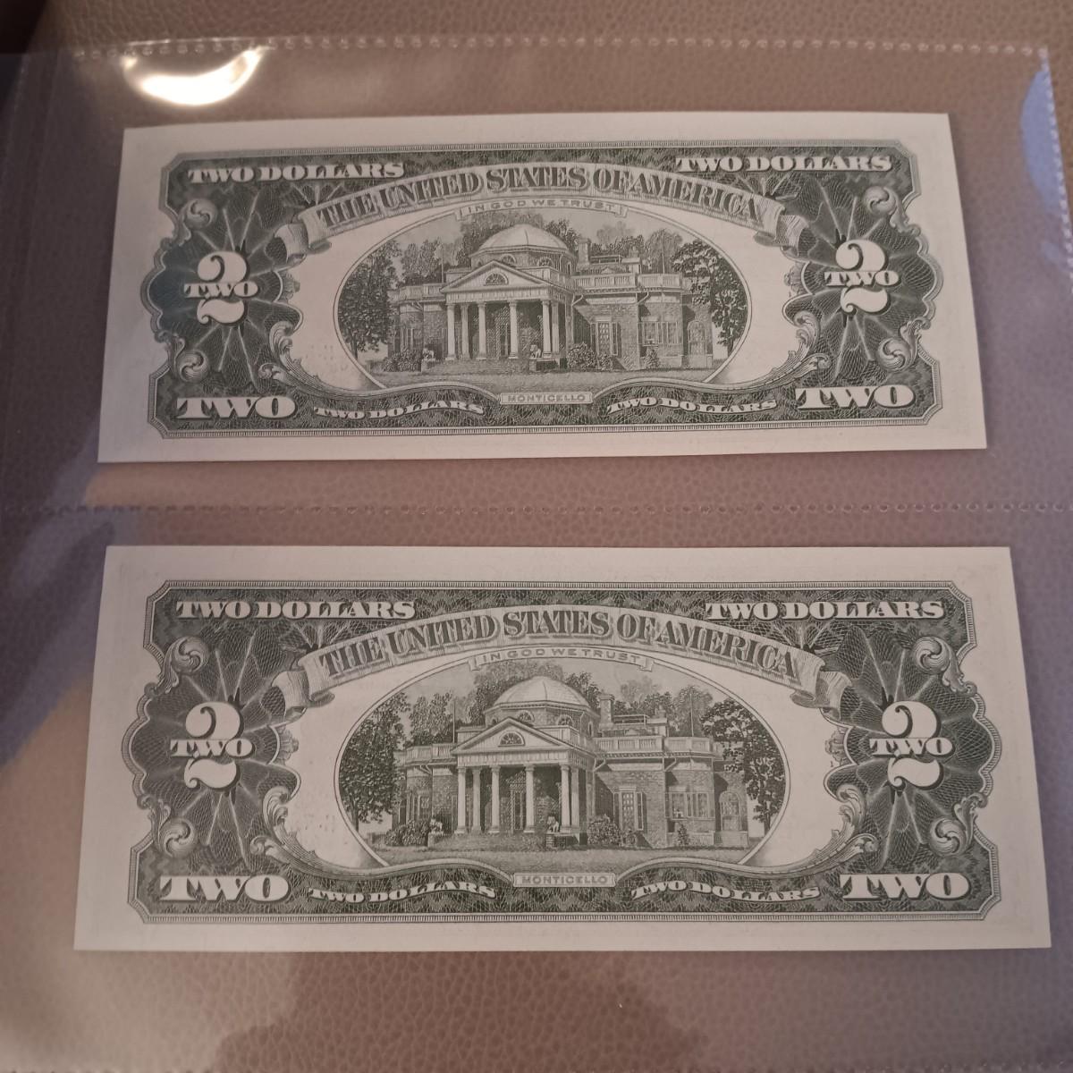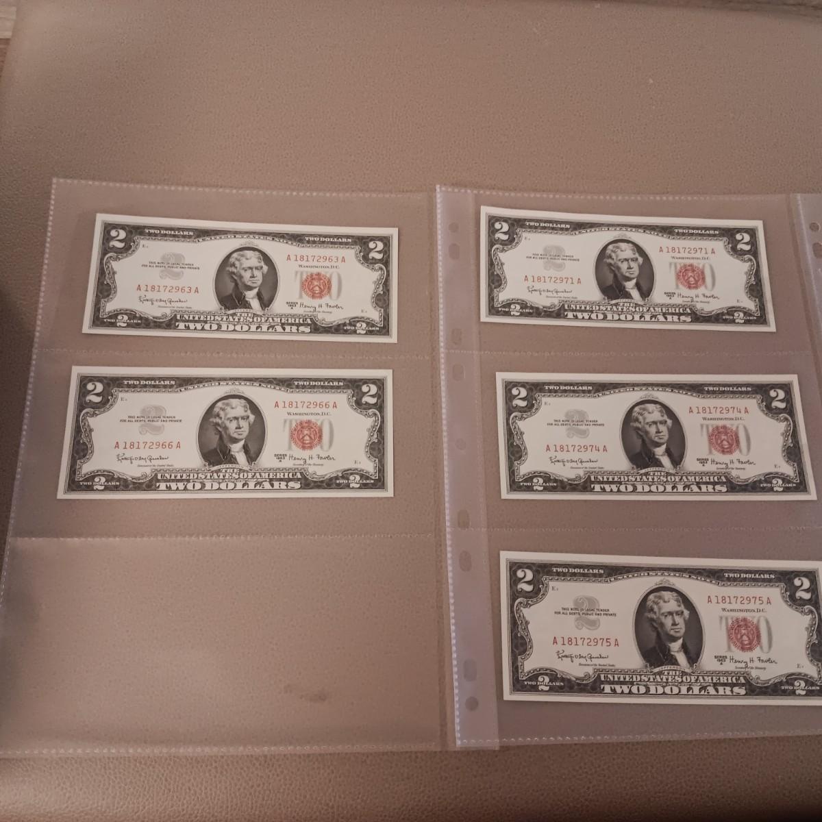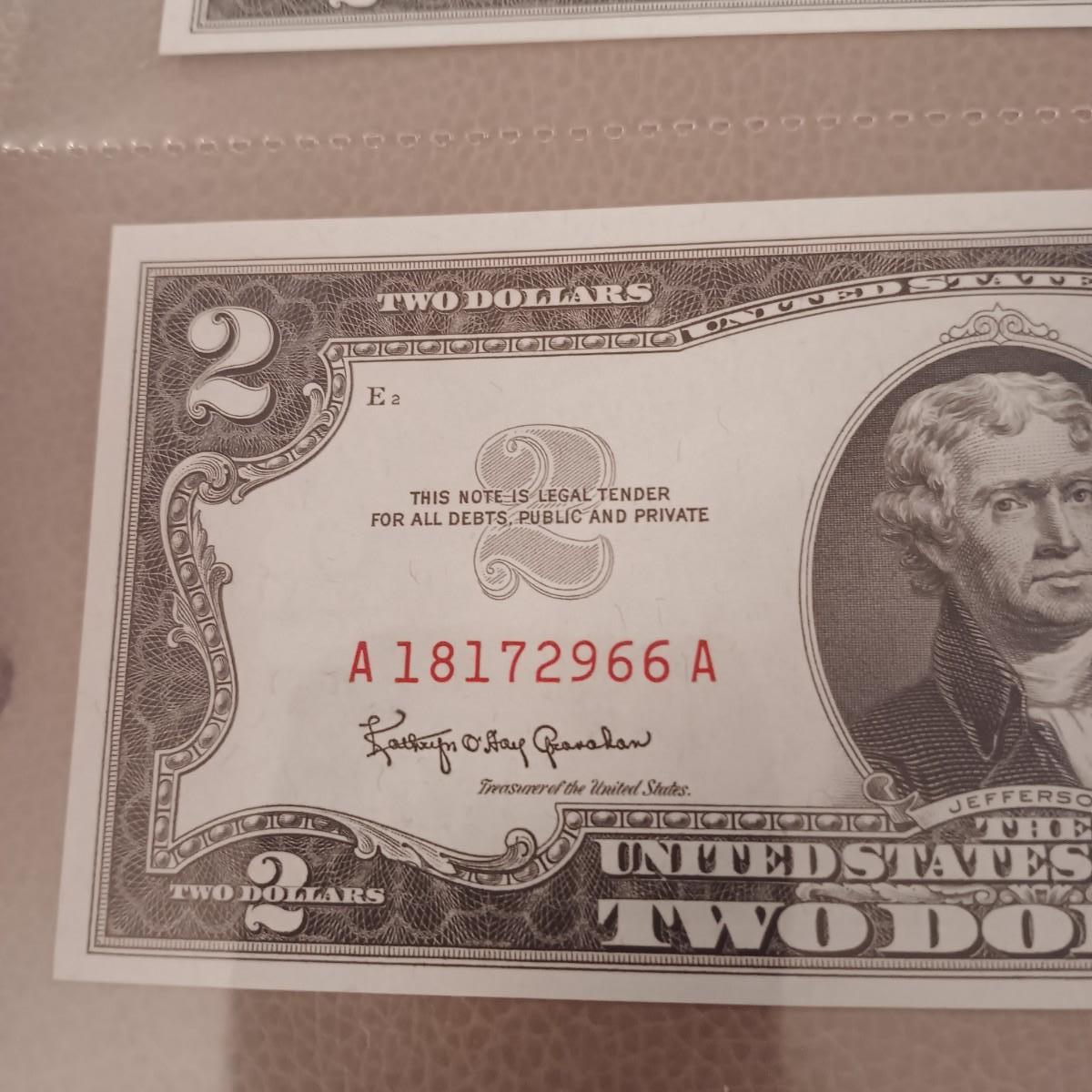 2 PAIRS OF SEQUENTIAL RED SEAL $2 DOLLAR BILLS