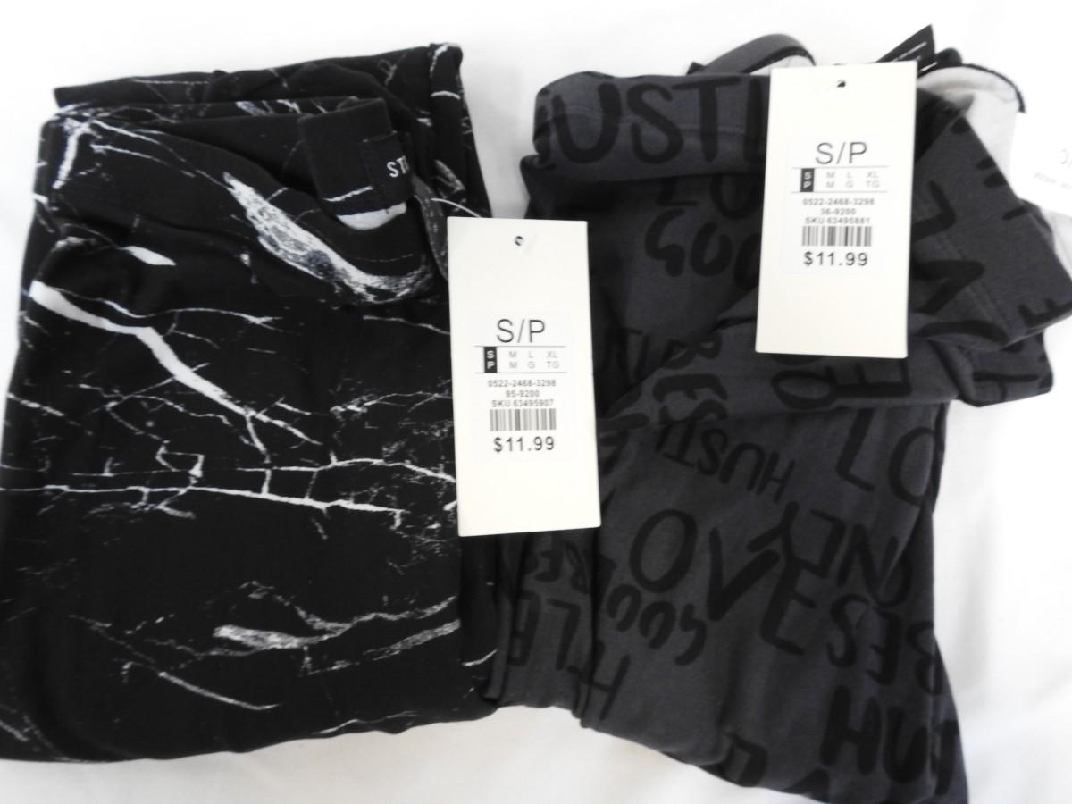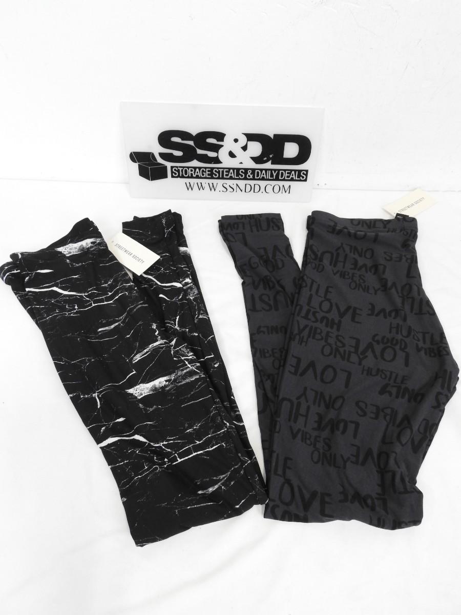 2 Pairs Small Leggings, Streetwear Society: Charcoal Words & Marble Prints - New