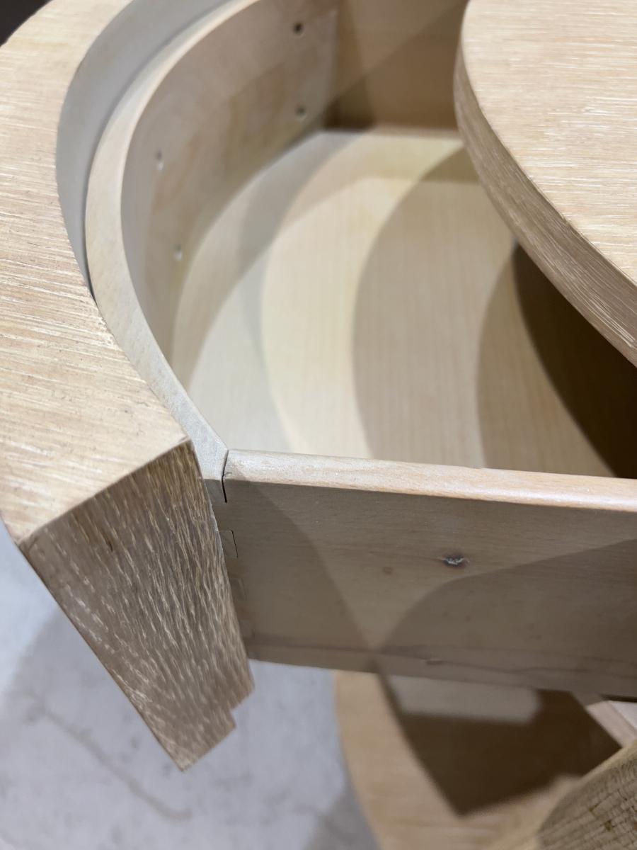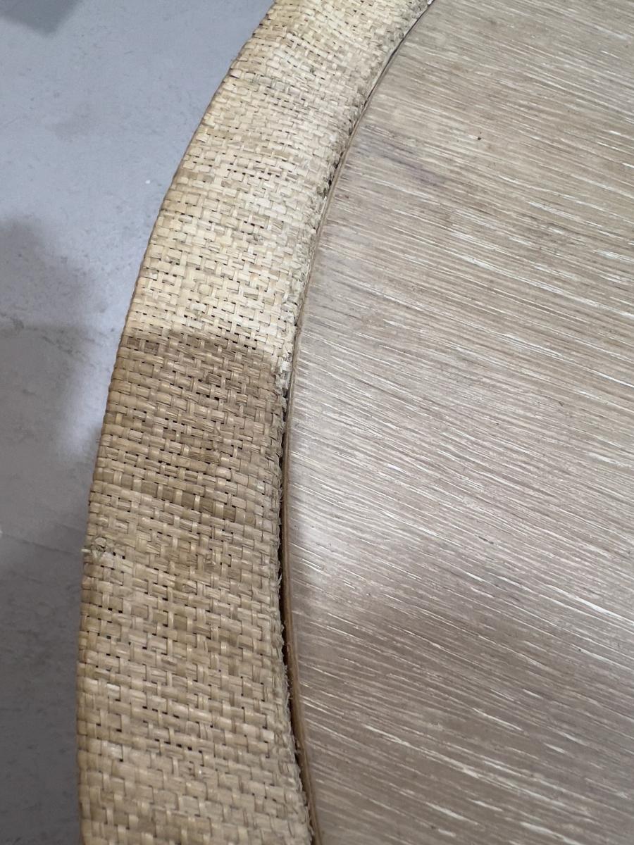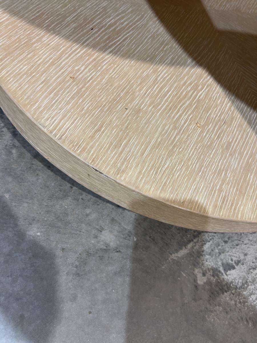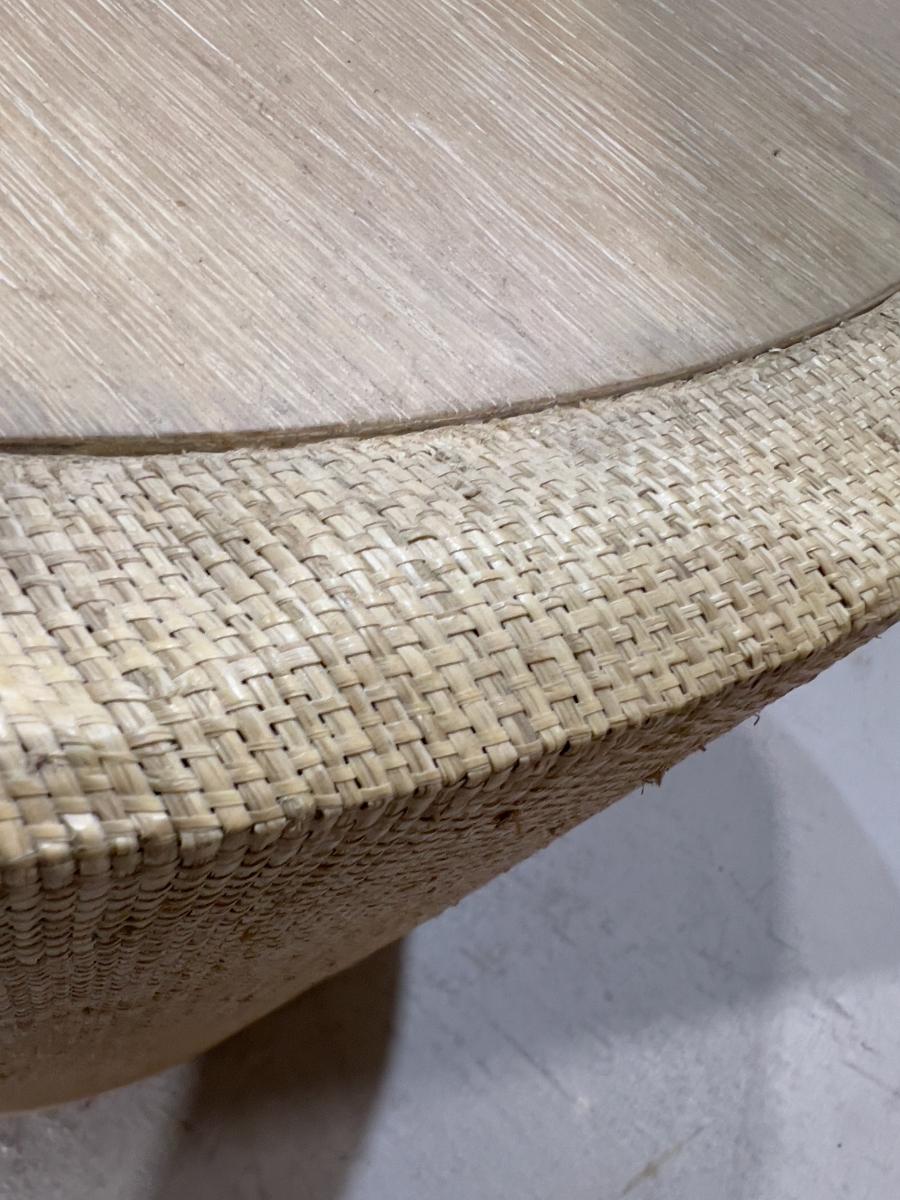 Venon Round Night Stands with Drawers. Each one has water damage on the burlap. Moisture Damage - See photos. Designer. Please provider moving assistance and secure transportation and or packing materials for moving. Retail $2,160 EACH!