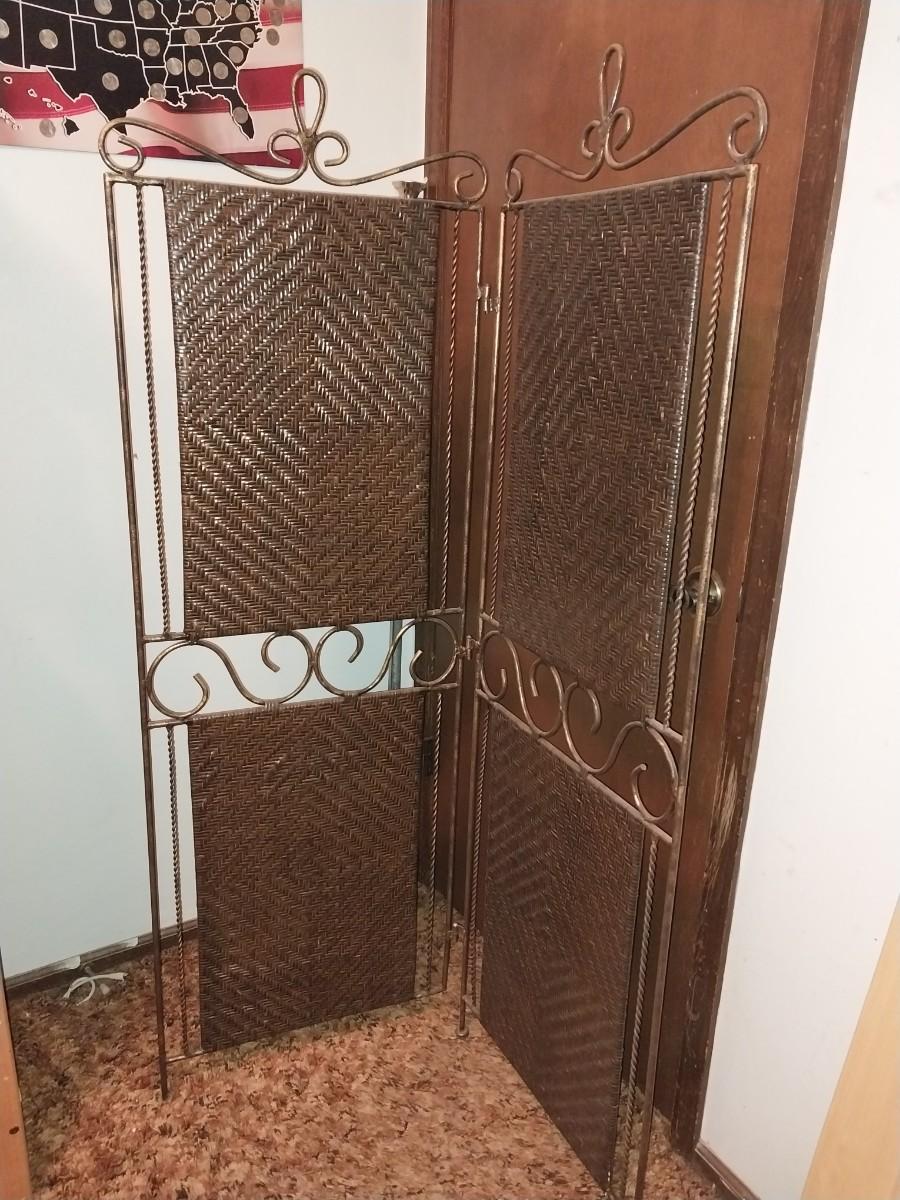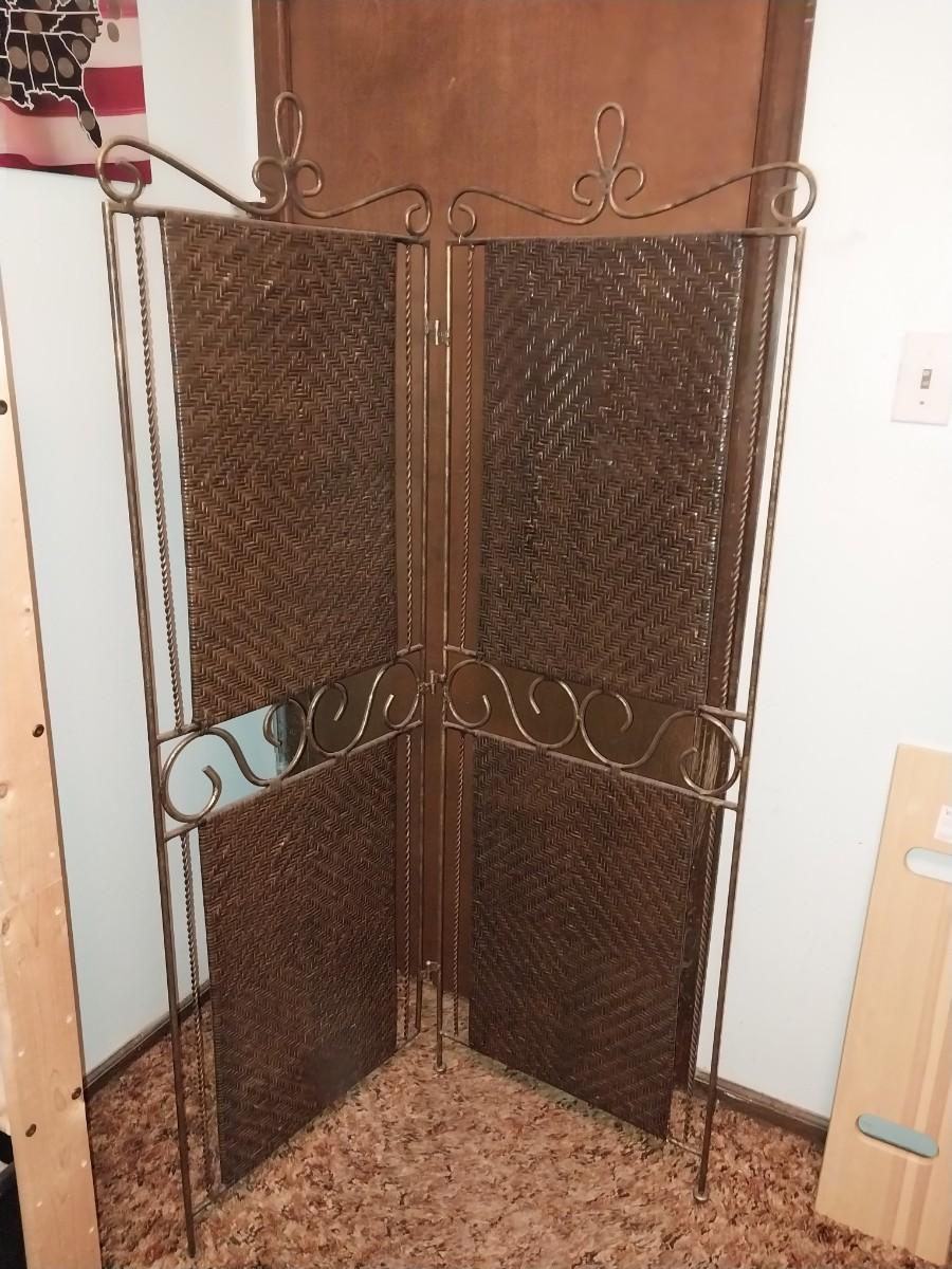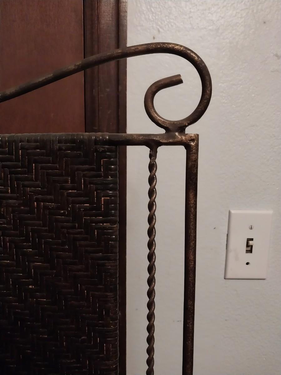 2 PANEL WROUGHT IRON AND WICKER ROOM SCREEN