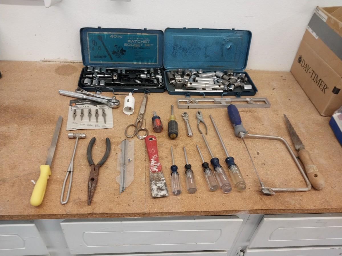 2 PARTIAAL SETS OF SOCKETS AND OTHER HAND TOOLS