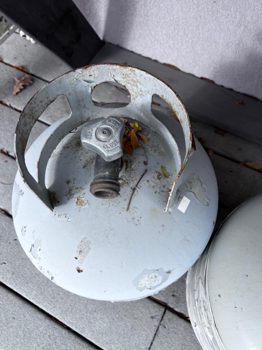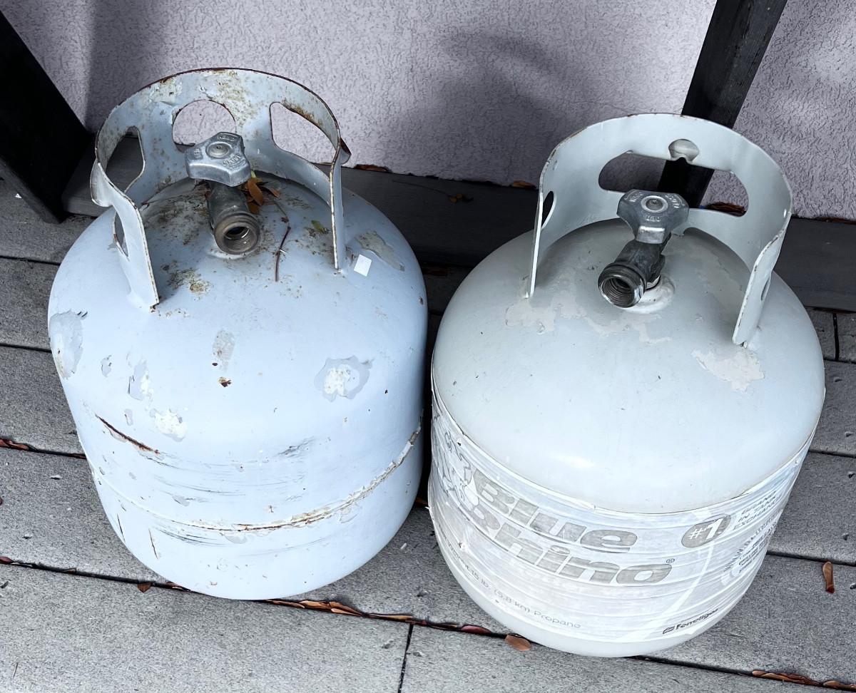 2 Partial 5 gallon propane tanks