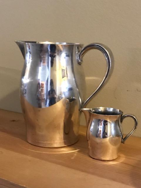 2 Paul Revere Silver-plate Pitchers -- 1 is a water pitcher (7"H), the other a creamer (2.5"H) Manufactured by William Rogers Co