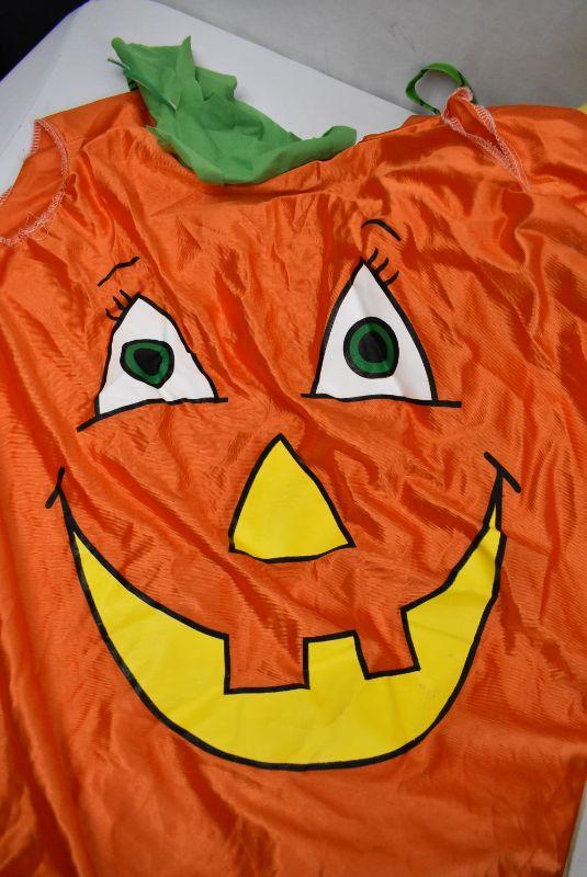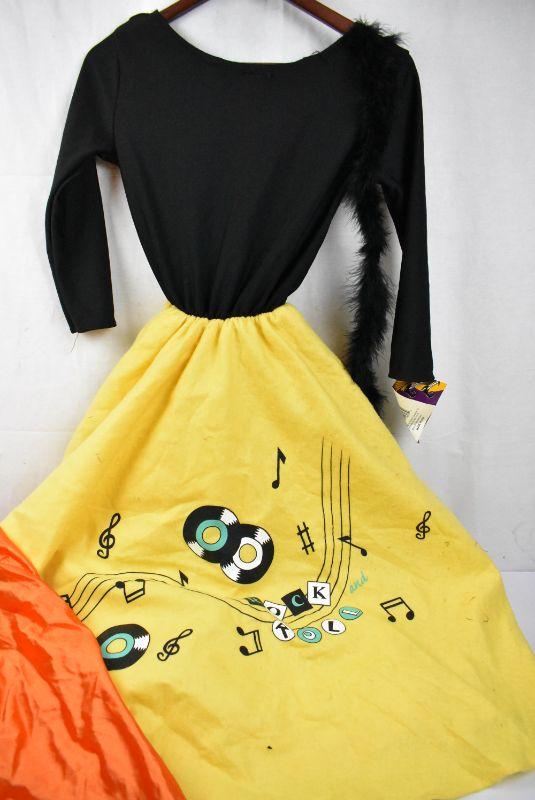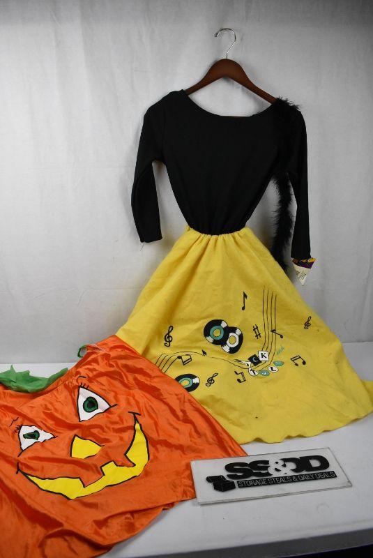 2 pc Adult Size Halloween Costumes. Orange Pumpkin & Yellow/Black Jitterbug Girl