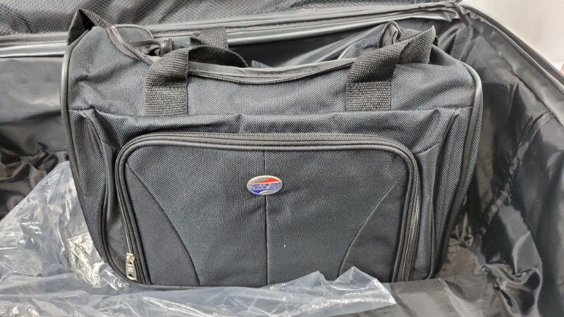 2 Pc American Tourister Suitcases, Soft Side Black Rolling Suitcase & Travel Bag