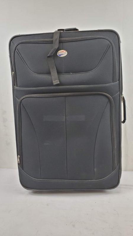 2 Piece American Tourister Suitcases, 1 Soft Side Black Rolling Suitcase & 1 Travel Bag (Travel Bag Appears New)