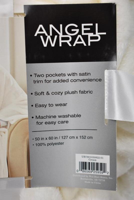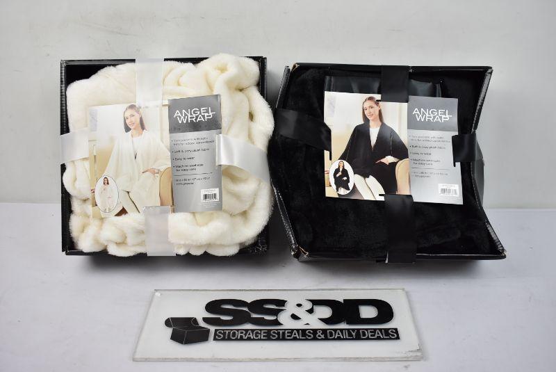 2 pc Giftable and Wearable Angel Wrap Plush Throw Blankets with Pockets, Cream & Black, Retail $25 - New