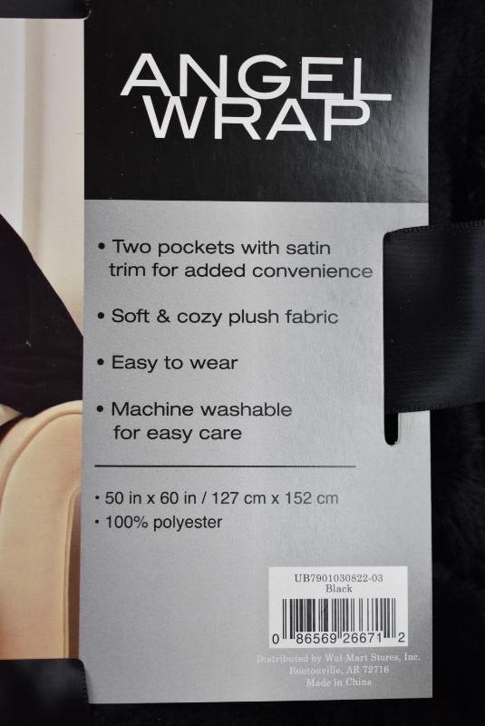 2 pc Angel Wrap Plush Throw Blankets w/ Pockets, Cream & Black, Retail $25 - New