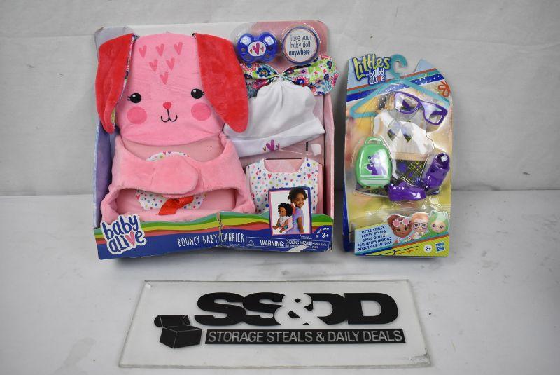 2 pc Baby Alive Toys: Soft Baby Carrier & Littles Little Styles Ready for School Outfit for Littles Dolls, $30 Retail - New