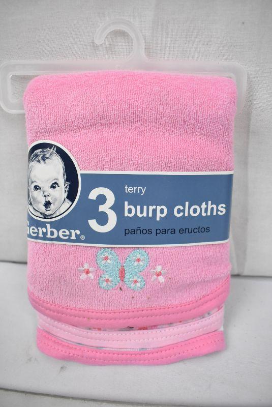 2 pc Baby: Philips Avent Baby Bottle and Nipple Brush, Grey & Gerber Terry Burp Cloths, pink - New