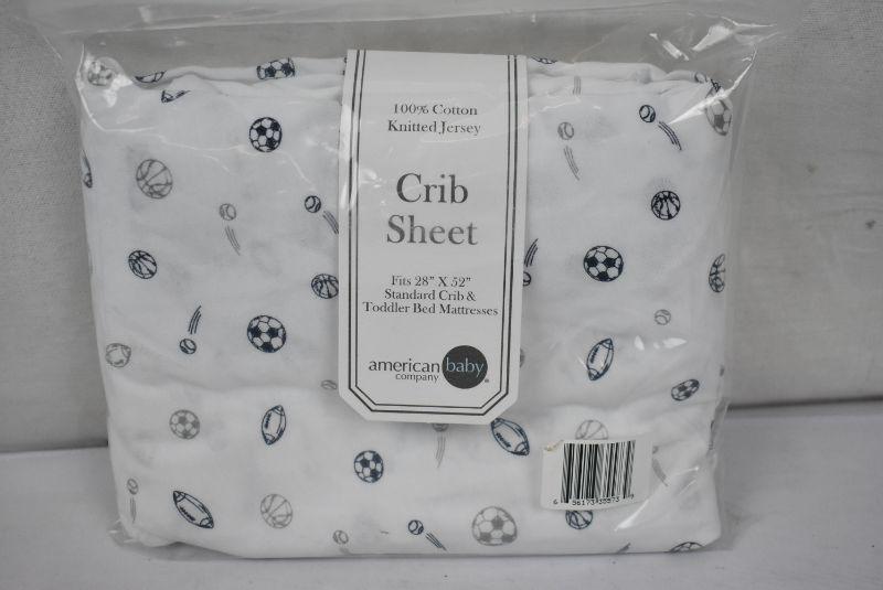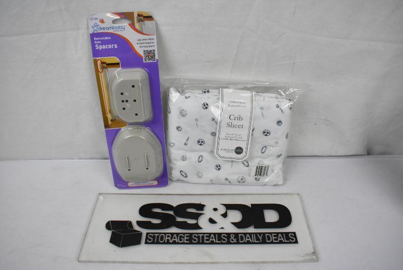 2 pc Baby: American Baby Co. Cotton Jersey Knit Fitted Crib Sheet, Grey Sports & Dream Baby Retractable Gate Spacers - New