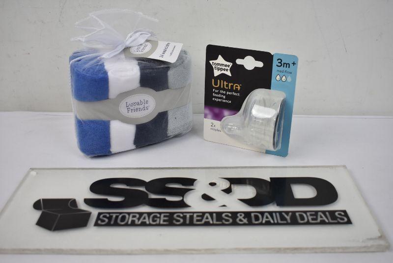 2 Pc Baby Lot: Washcloths & Tommee Tippee Nipples Medium Flow - New