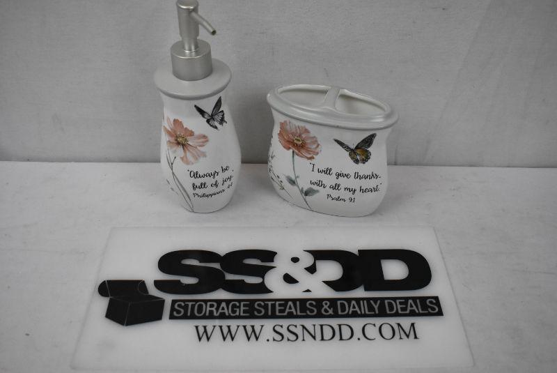 2 pc Bath: Mainstays Inspire Toothbrush Holder & Mainstays Inspire Lotion/Soap dispenser - New