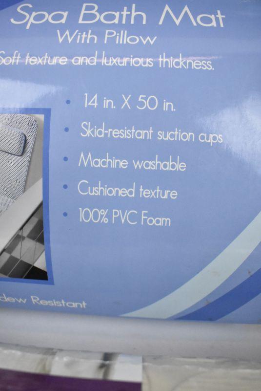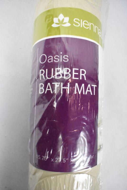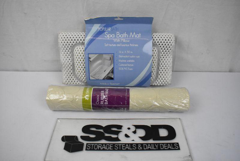 2 pc Bathroom: Cream Colored Rubber Bath Mat 15.75"x27.5" & Spa Bath Mat 14"x50" White - New
