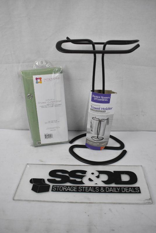 2 pc Bathroom: Sage Green Shower Curtain Liner & Fingertip Towel Holder - New