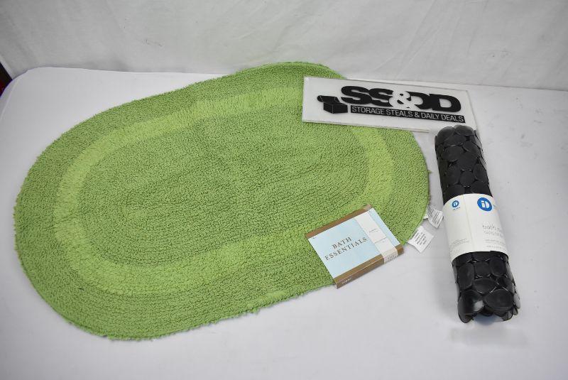 2 pc Bathroom: Chesapeake Bath Essential Spring Green Cotton Oval Rug (19"x29") & InterDesign Pebblz Bath Mat - New