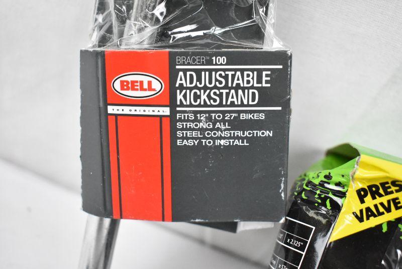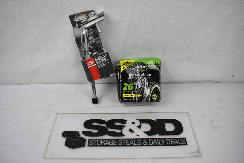 2 pc Bike Accessories: Bell Kickstand & 26" Slime Tube - Damaged Packaging - New