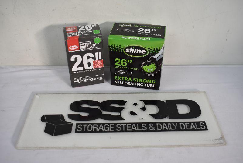 2 pc Bike Tubes: Slime Self-Sealing Smart Replacement Bike/Bicycle Inner Tube, Schrader 26"x1.75-2.125" - 30045 AND Bell Sports Standard Bicycle Inner Tube, 35mm Schrader Valve, 26" x 1.75-2.25" - New