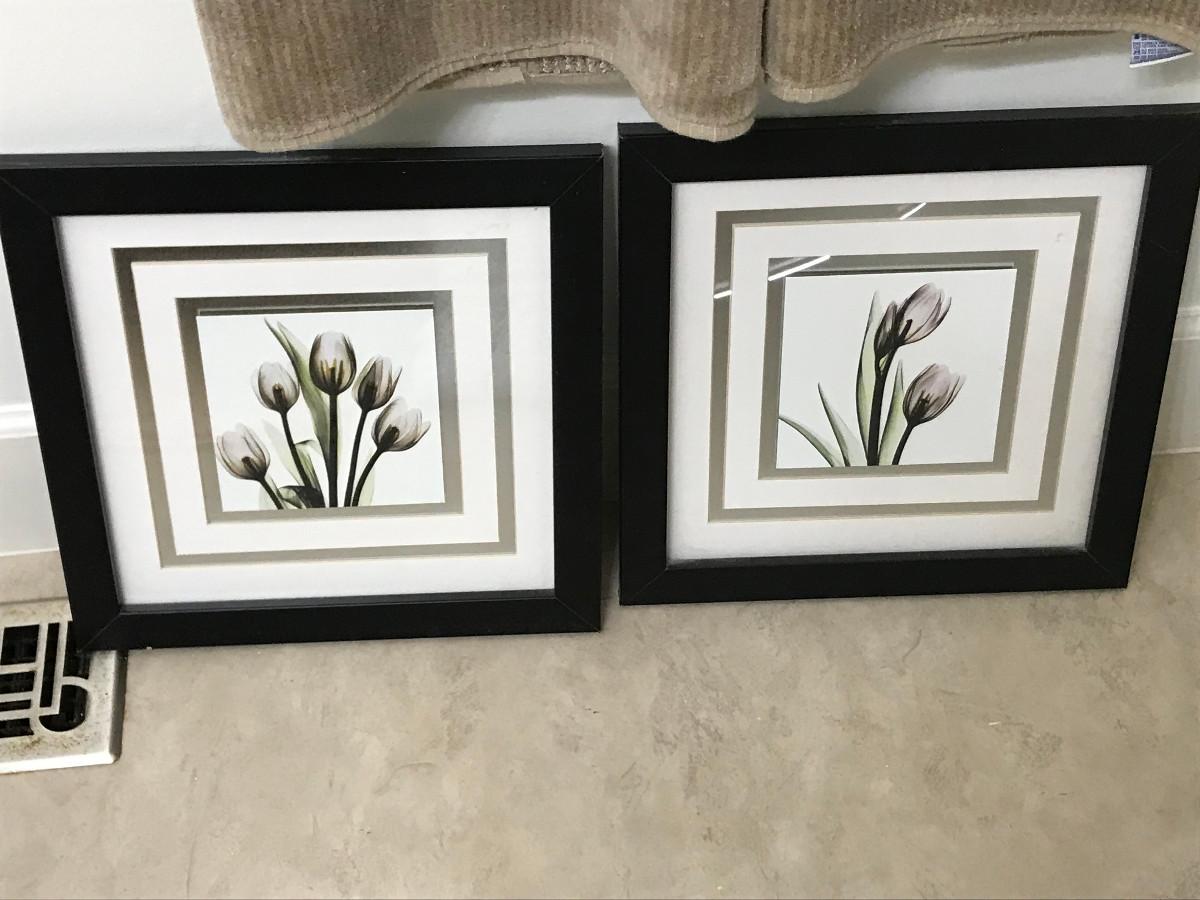 2 PC BLACK & WHITE FRAMED TULIP PRINTS
