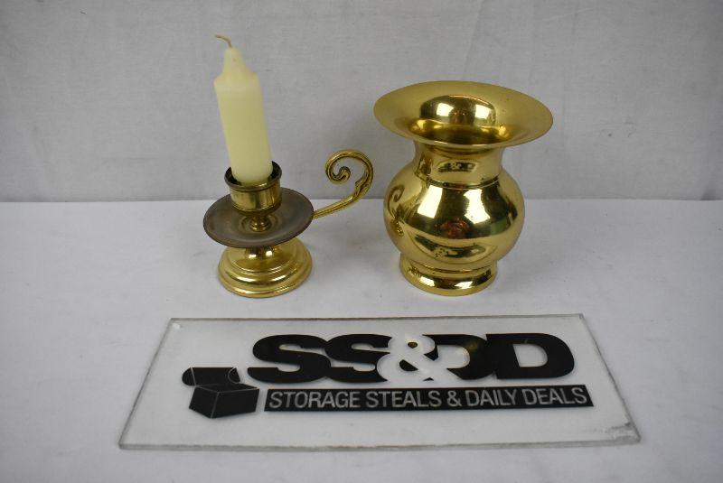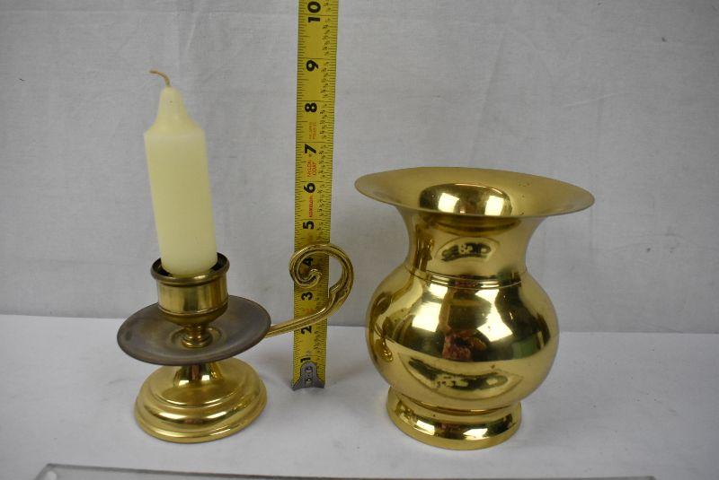 2 pc Brass Decor: Candle Holder & Vase