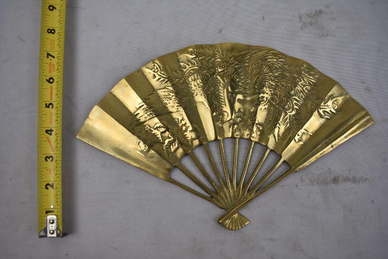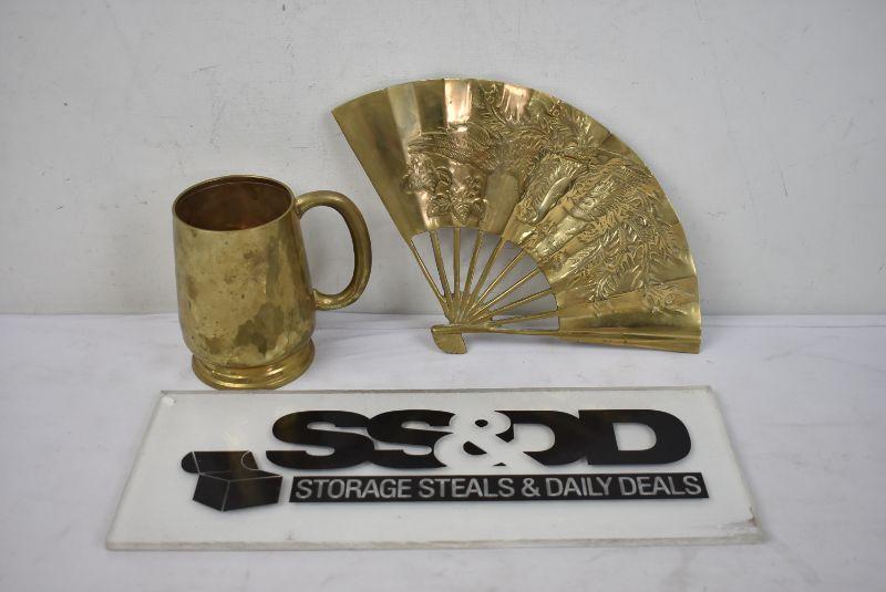 2 pc Brass Decor: Lightweight Cup & Heavy Fan