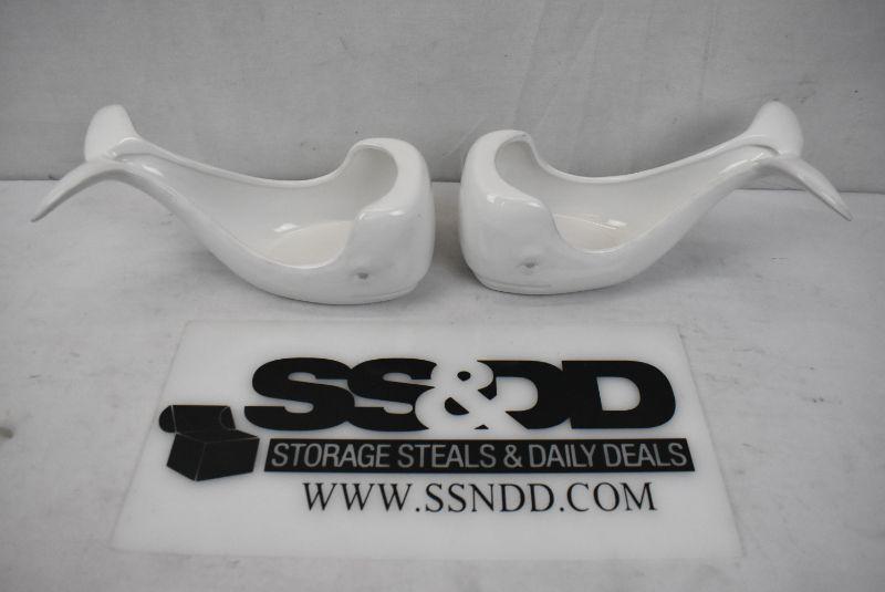 2 pc Ceramic Whale Decor. Kitchen for Sponges? Planters for small plants?