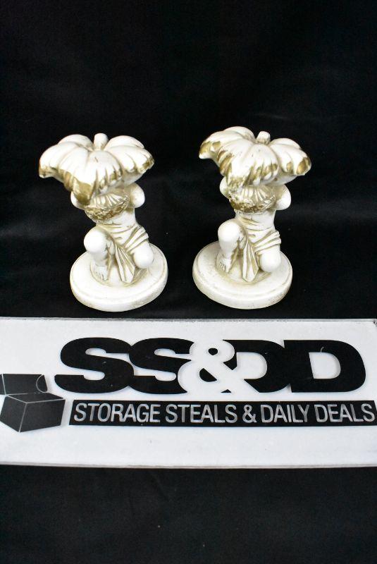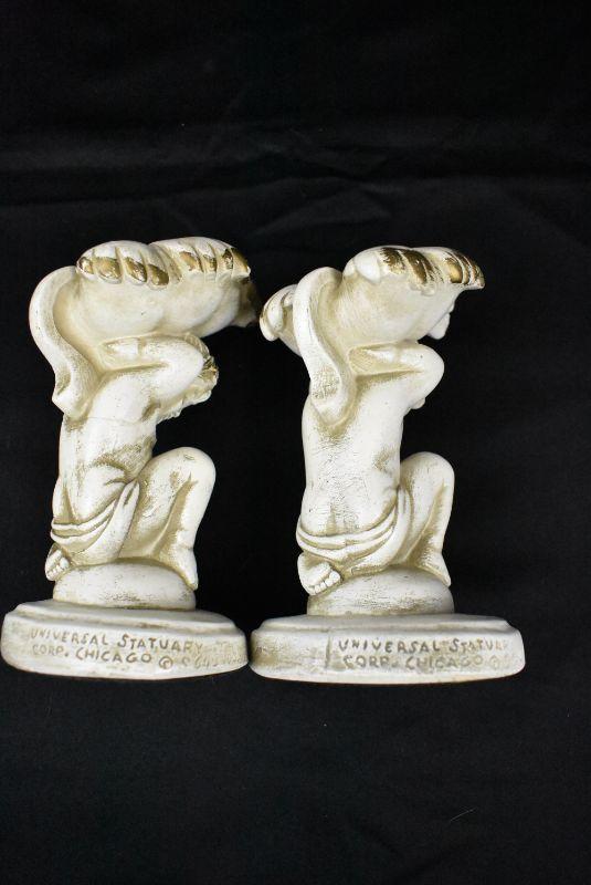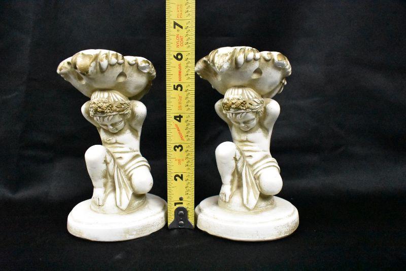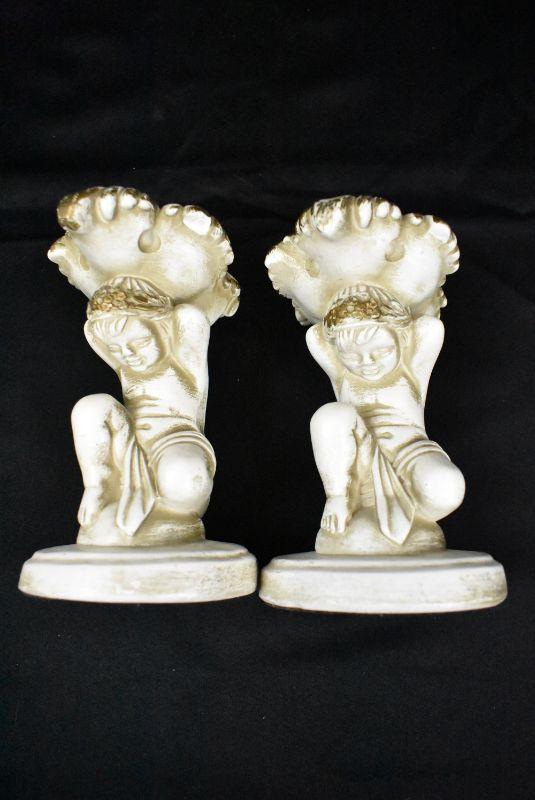 2 pc Cherubs Candle Holders. Vintage Glazed Ceramic by Universal Statuary