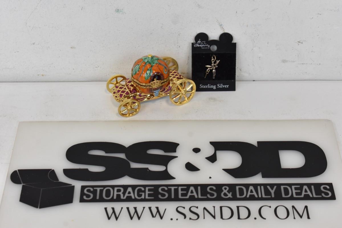 2 pc Disney: Limoges France Cinderella Carriage Trinket Box & Tinkerbell Sterling Silver Pendant