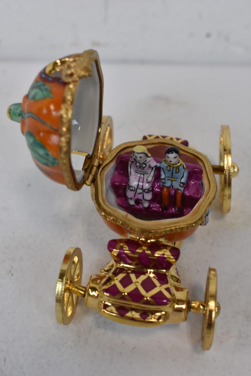 2 pc Disney: Limoges France Cinderella Carriage Trinket Box & Tinkerbell Pendant