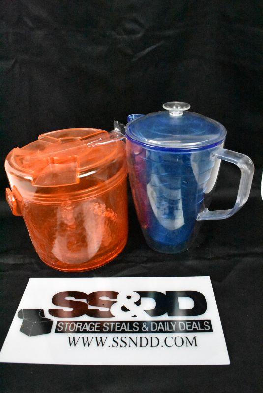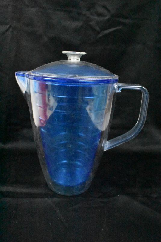 2 pc Entertaining: Orange Ice Bucket & Blue Pitcher