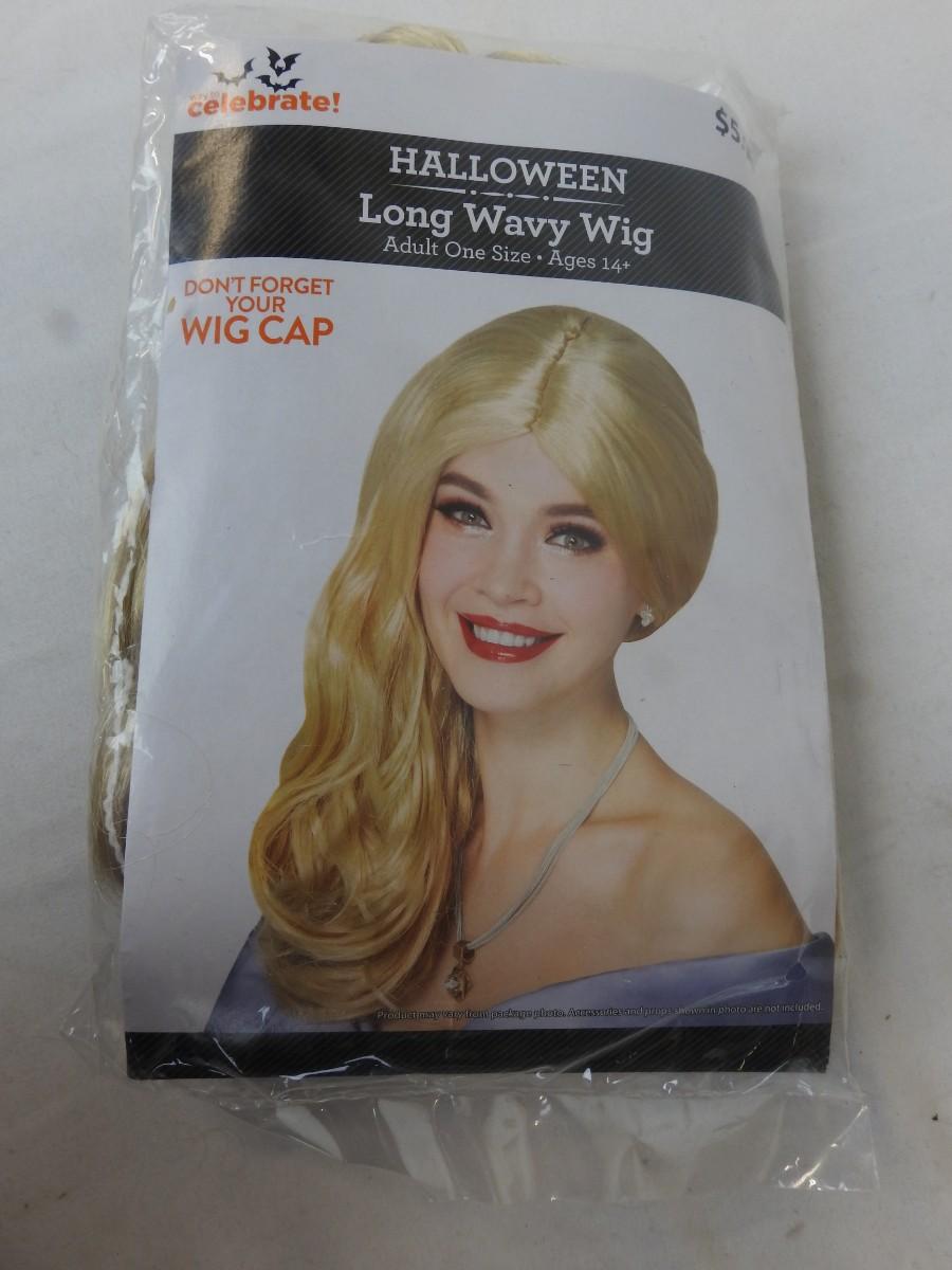 2 pc Fall/Halloween: Light Up Scarecrow Door Greeter & Blond Long Wavy Wig - New