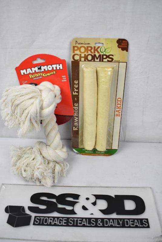 2 pc for Large Dogs: Mammoth Flossy Chew (some warehouse dirt) and Premium Pork Chomps - New