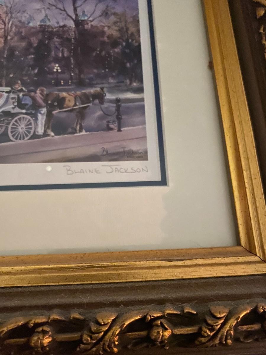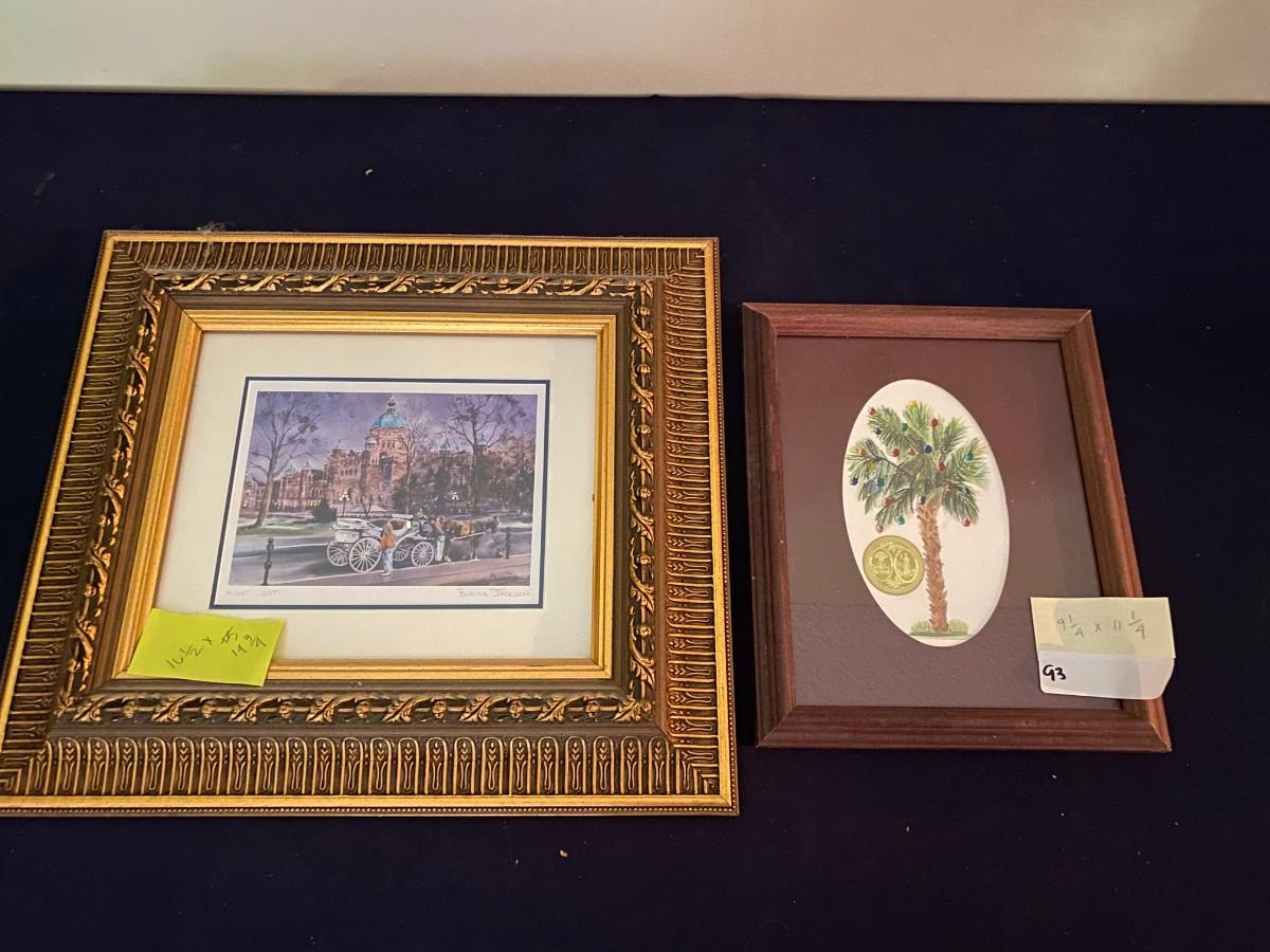 2 Pc Framed Art Lot Includes Palmetto Tree Christmas Tree, One Signed Blaine Jackson