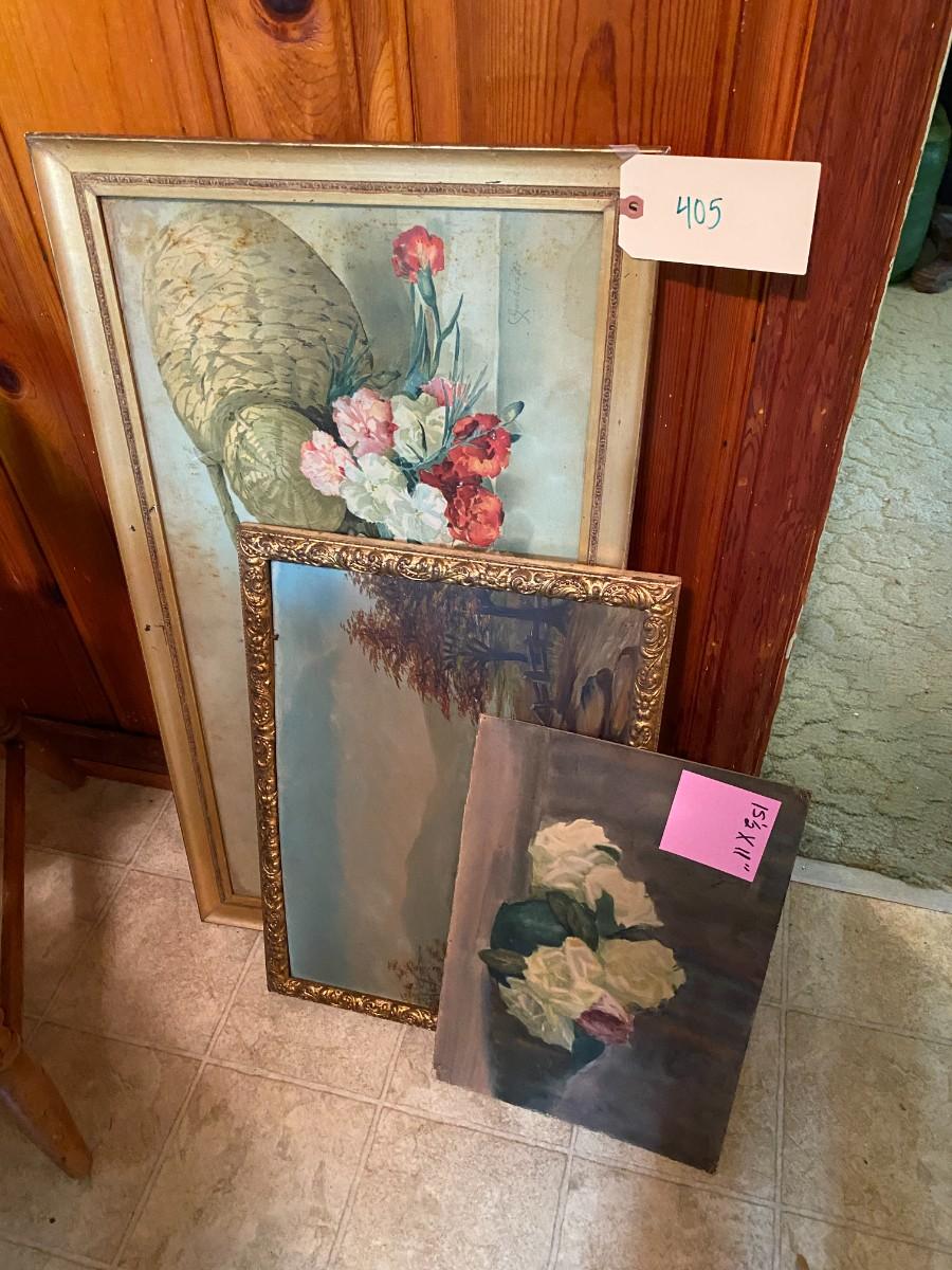 LOT 405 3 Pc Framed and unframed Painting/print Lot, One Signed Goodyear, One Unsigned