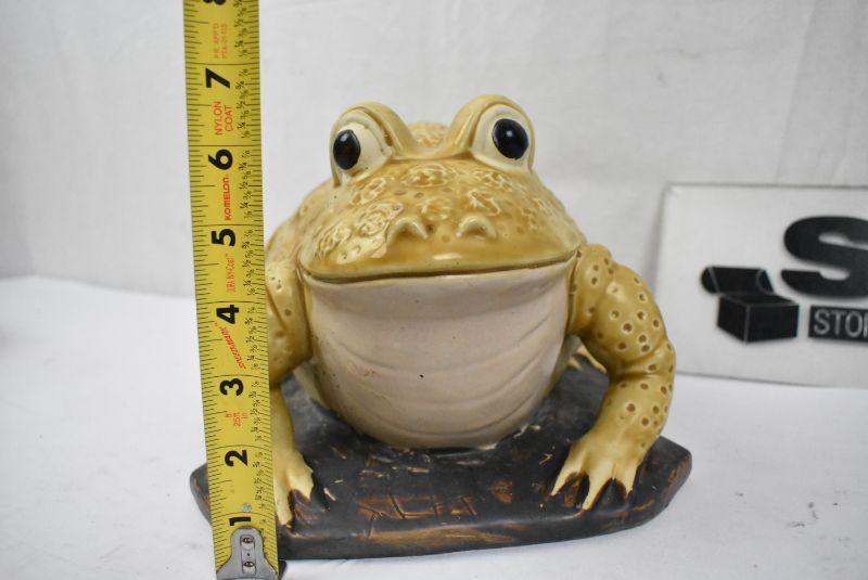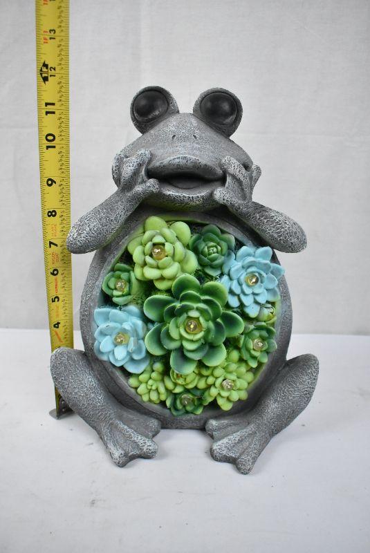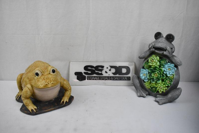 2 pc Frogs Lawn Decor: Brown Ceramic & Gray Plastic w/ Faux Succulents