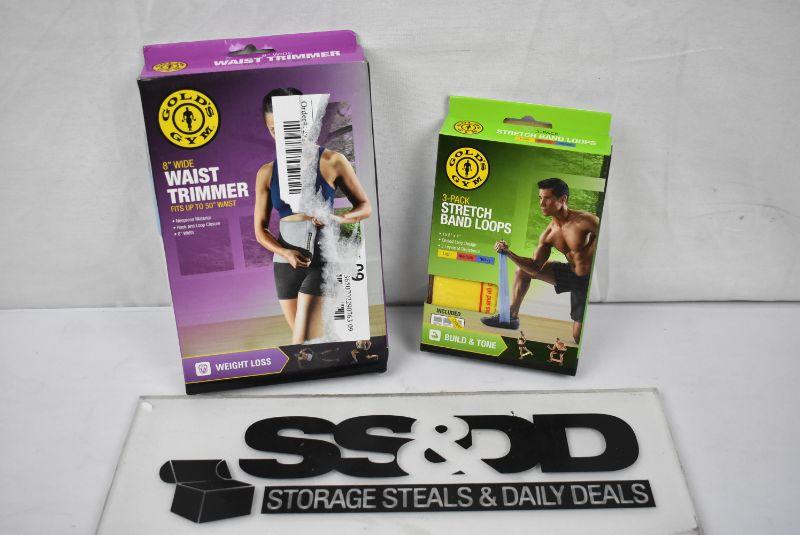 2 pc Gold's Gym: Gold's Gym 8" Wide Waist Trimmer AND Gold's Gym 3-Pack Stretch Resistance Loop Bands - New