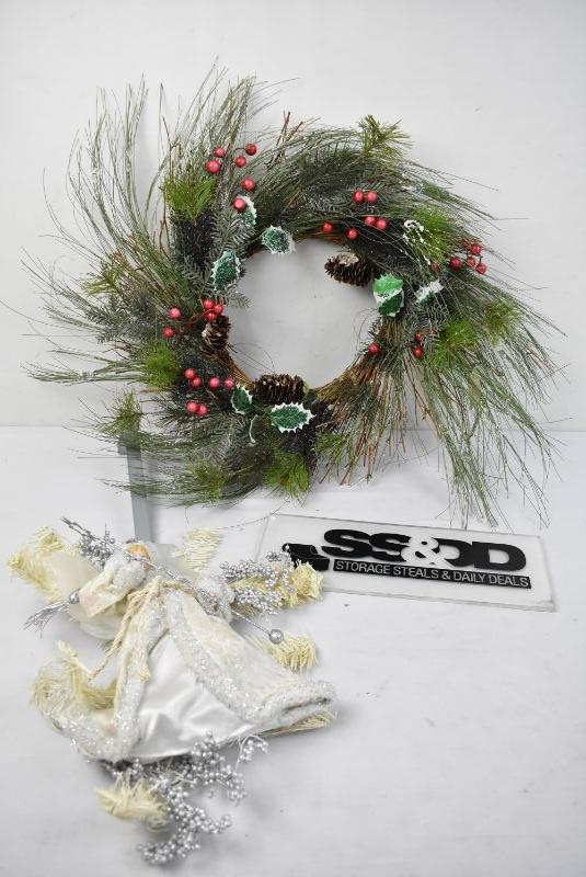 2 pc Holiday Decor: Wreath & Angel Door Hanger