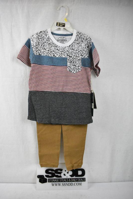 2 pc Kids Outfit Size 5. Short Sleeve Shirt & Brown Jogger Pants - New
