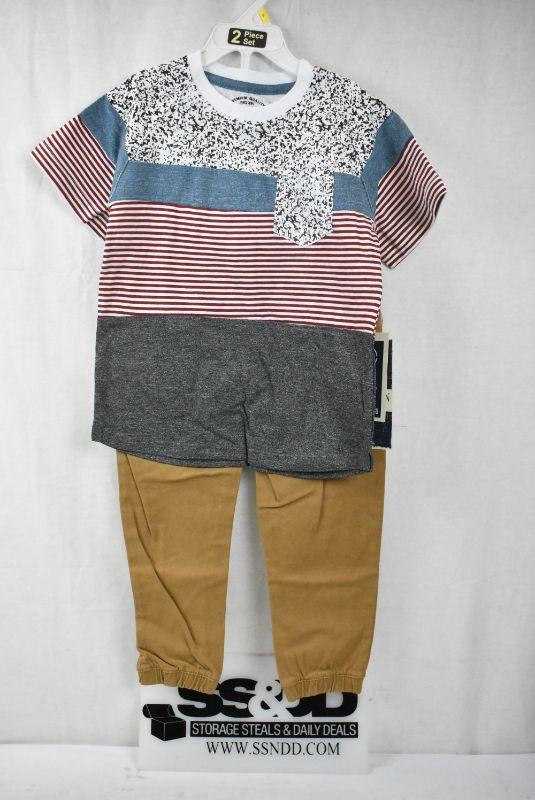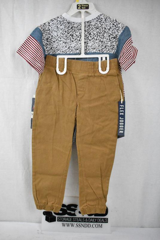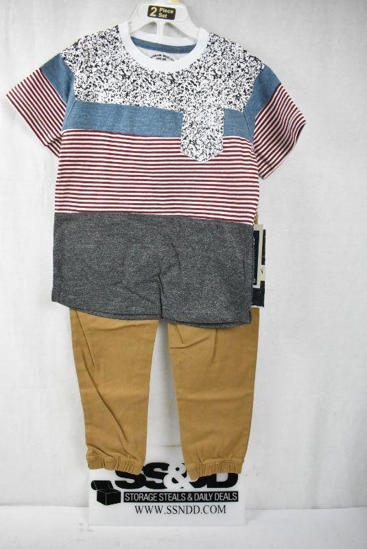 2 pc Kids Outfit Size 5. Short Sleeve Shirt & Brown Jogger Pants - New