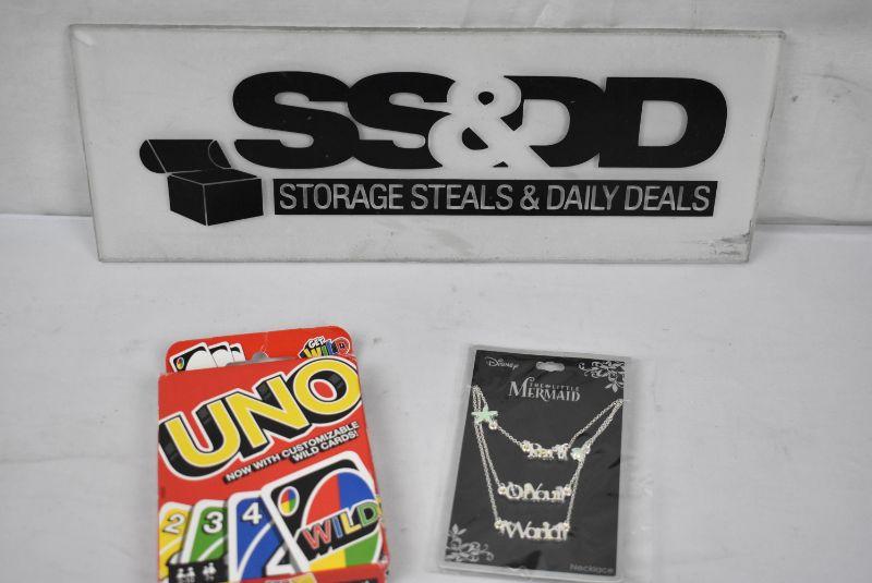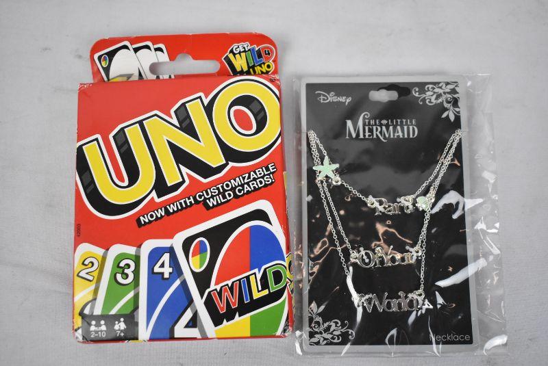 2 pc Kids: UNO Color & Number Matching Card Game & Little Mermaid Necklace - New