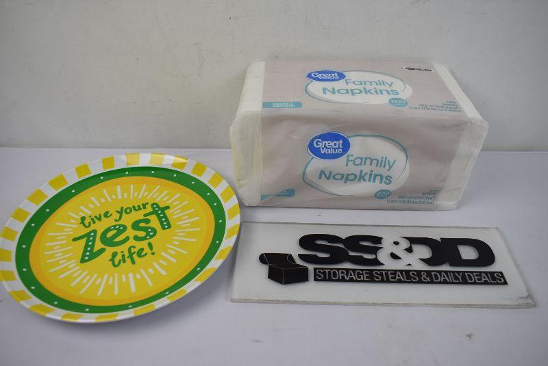 2 Piece Kitchen: "Live your Zest Life" Plastic Platter & Package of Napkins - New