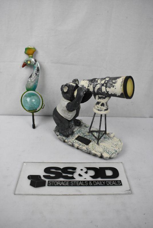 2 pc Lawn Decor: Peacock & Bear with Telescope