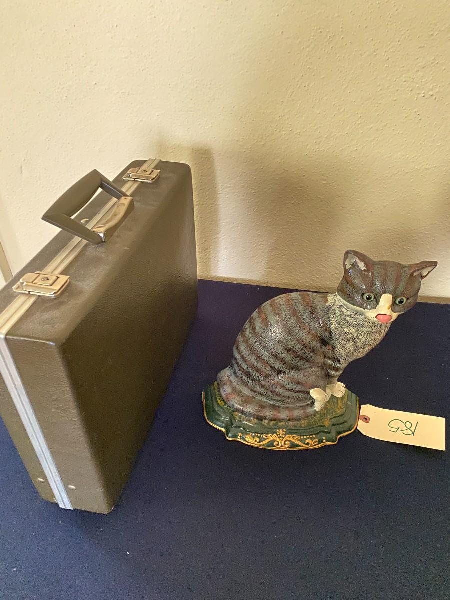 Brief Case and Cat Cast Iron Door Stop As Pictured